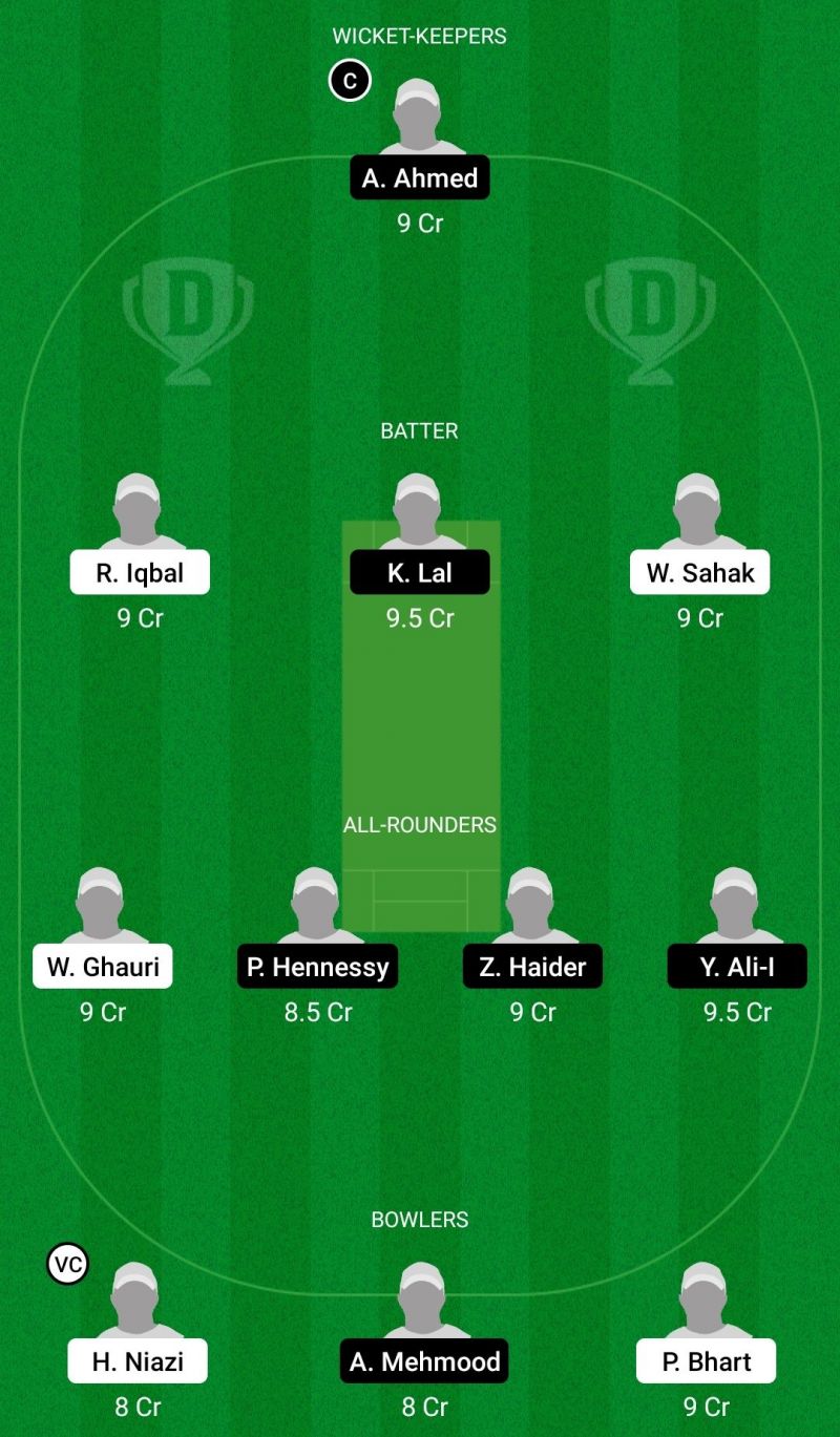 Fantasy Suggestion #1: Awais Ahmed, Raza Iqbal, Kuldeep Lal, Wahidullah Sahak, Walid Ghauri, Hamza Saleem, Zulqarnain Haider, Vinay Ravi, Hayatullah Niazi, Atif Mehmood, Ahmadullah Shinwari