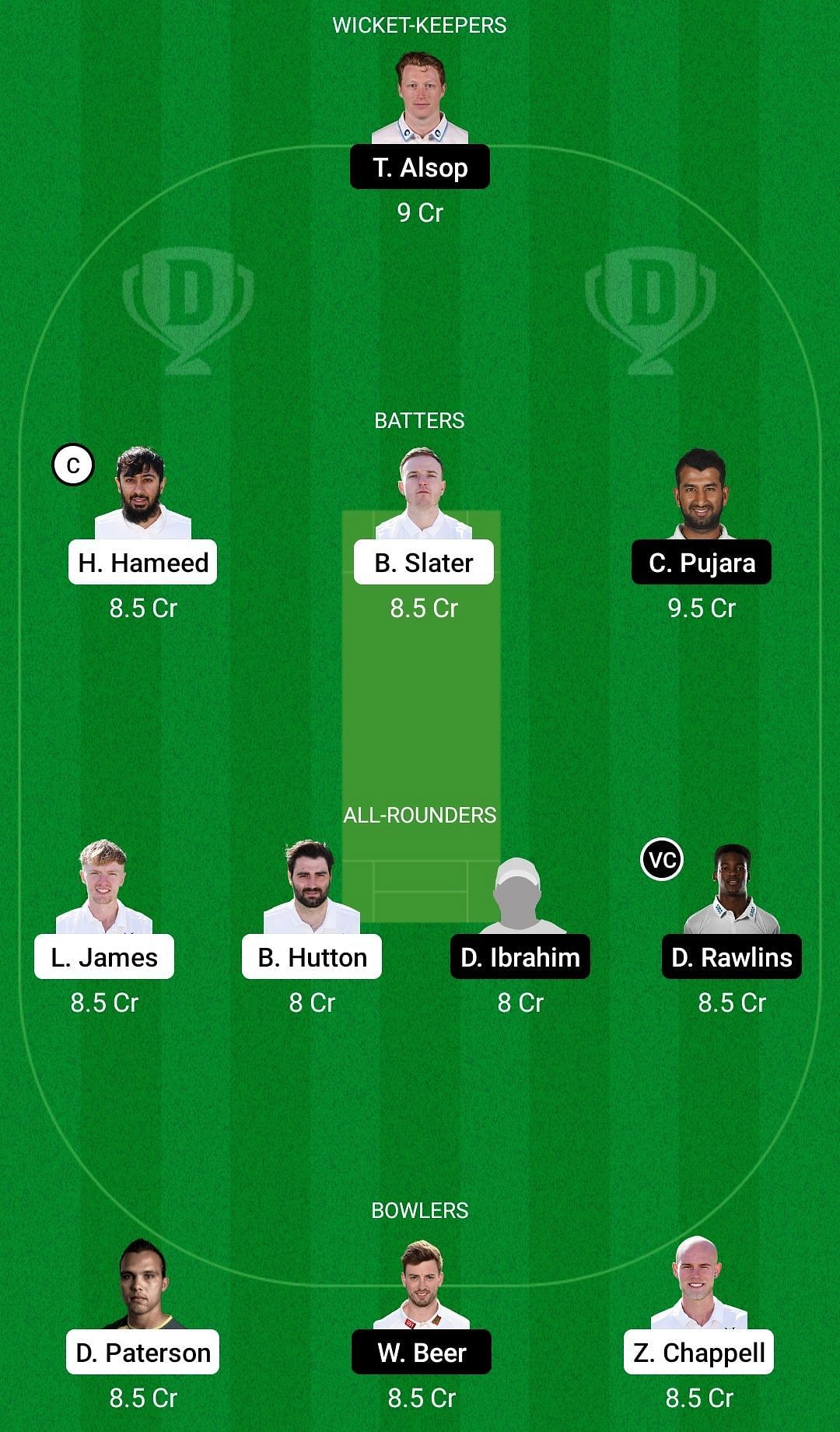 Fantasy Suggestion #2: Dane Schadendorf, Tom Alsop, Haseeb Hameed, Ben Slater, Cheteshwar Pujara, Bret Hutton, James Coles, Delray Rawlins, Liam Patterson-White, Dane Paterson, Henry Crocombe.
