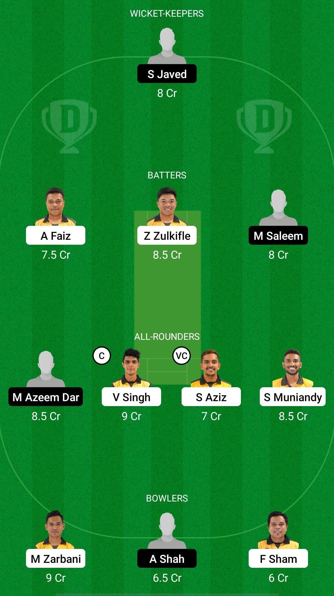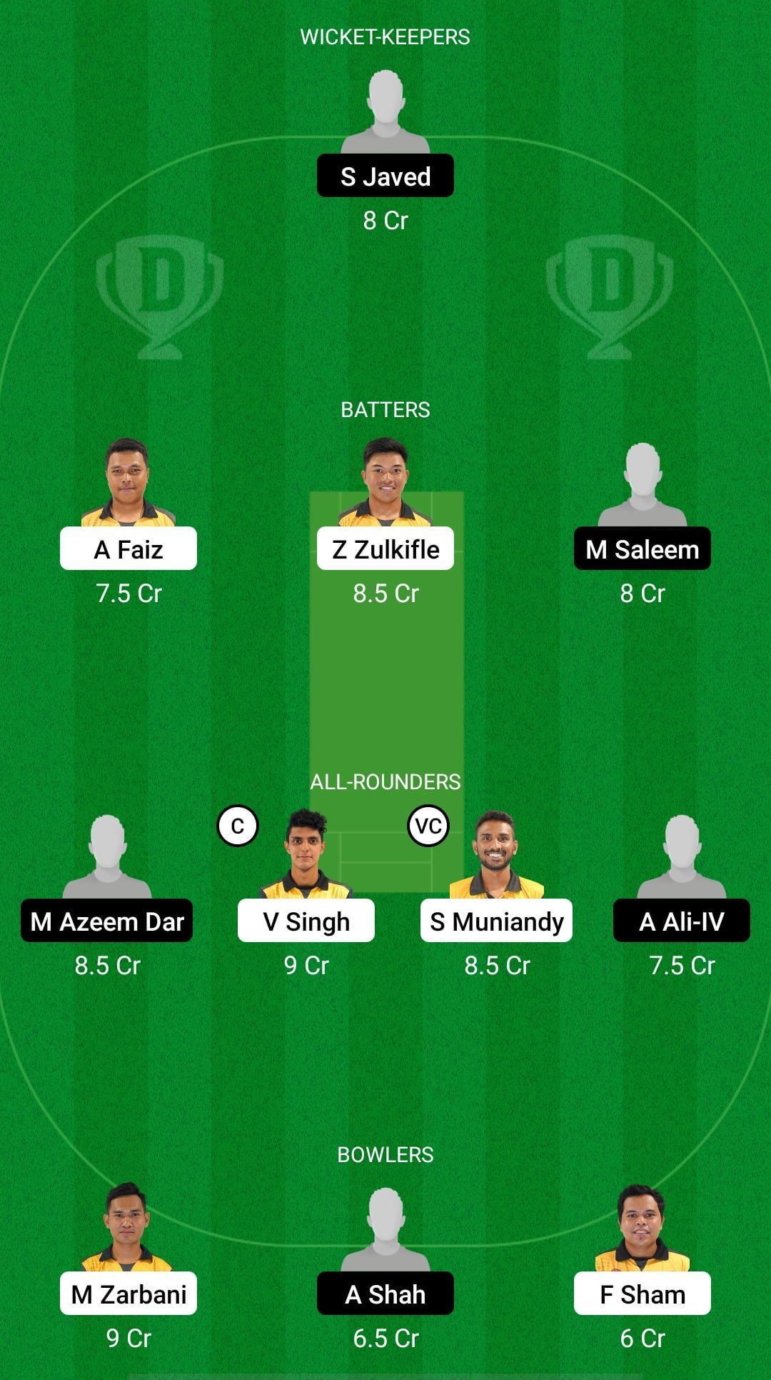 All-rounders: Azeem Dar, Virandeep Singh, Syed Aziz, Sharvin Muniandy