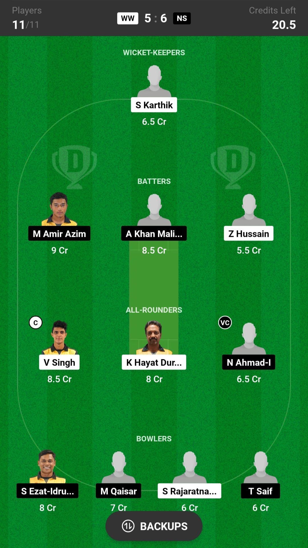 V Singh and N Ahmad are the best all-rounder picks for the Dream11 team as they are batting in the top order and also completing their quota of overs. K Hayat is another good pick for today's Dream11 match.