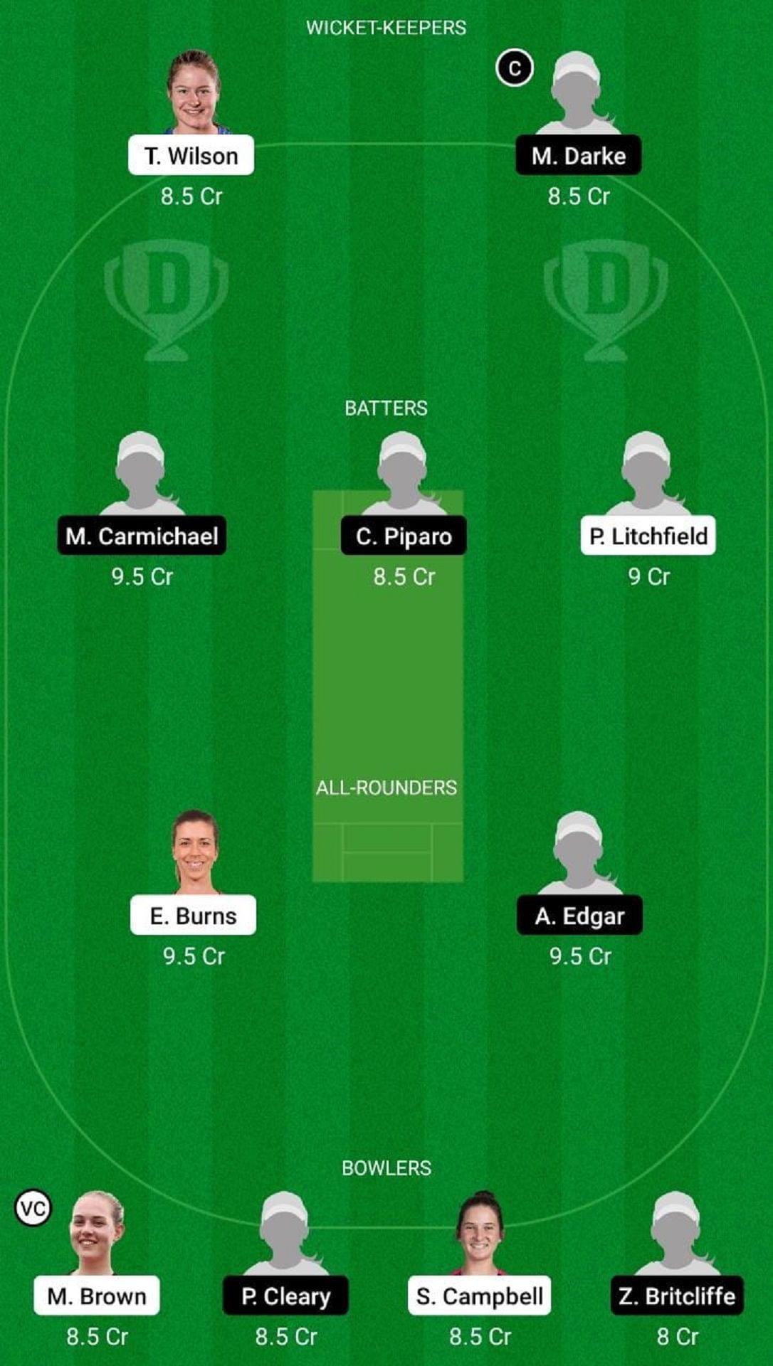 Chloe Piparo (c), Ashley Day, Maddy Darke (wk), Mathilda Carmichael, Maia Bouchier, Amy Edgar, Piepa Cleary, Charis Bekker, Georgia Wyllie, Zoe Britcliffe, Sheldyn Cooper