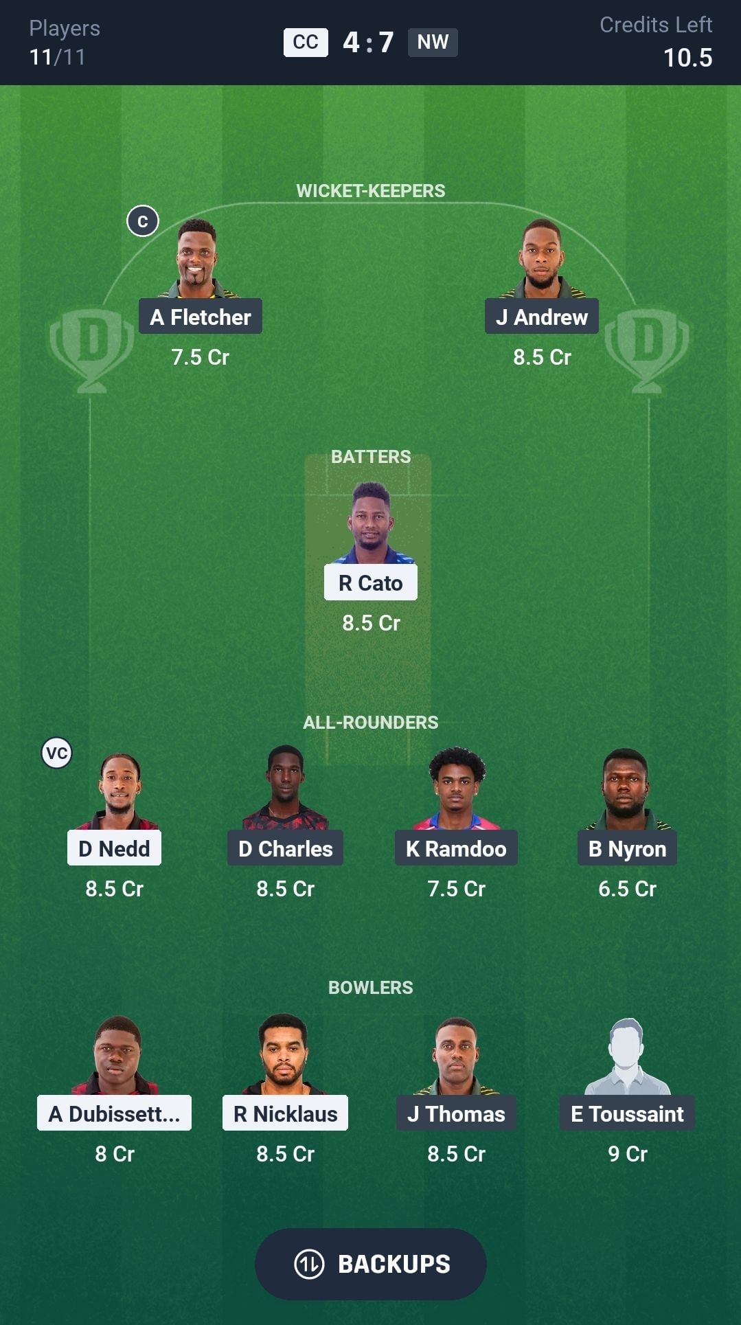 D Nedd and D Charles are the best all-rounders for the Dream11 team. Both players are crucial for today's match. D Nedd will bat in the top order and complete his quota of overs in today's match. He has smashed 118 runs and taken 2 wickets in the last four matches. K Ramdoo is another good all-rounder for today's match.