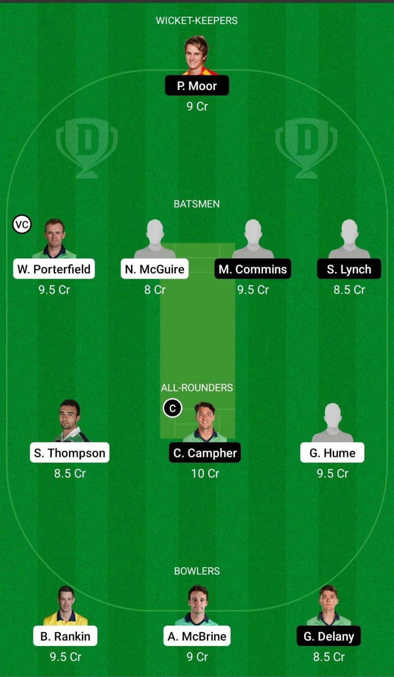 Fantasy Suggestion #1: Peter Moor, William Porterfield, Nathan McGuire, Murray Commins, Seamus Lynch, Stuart Thompson, Curtis Campher, Graham Hume, Boyd Rankin, Andy McBrine, Gareth Delany