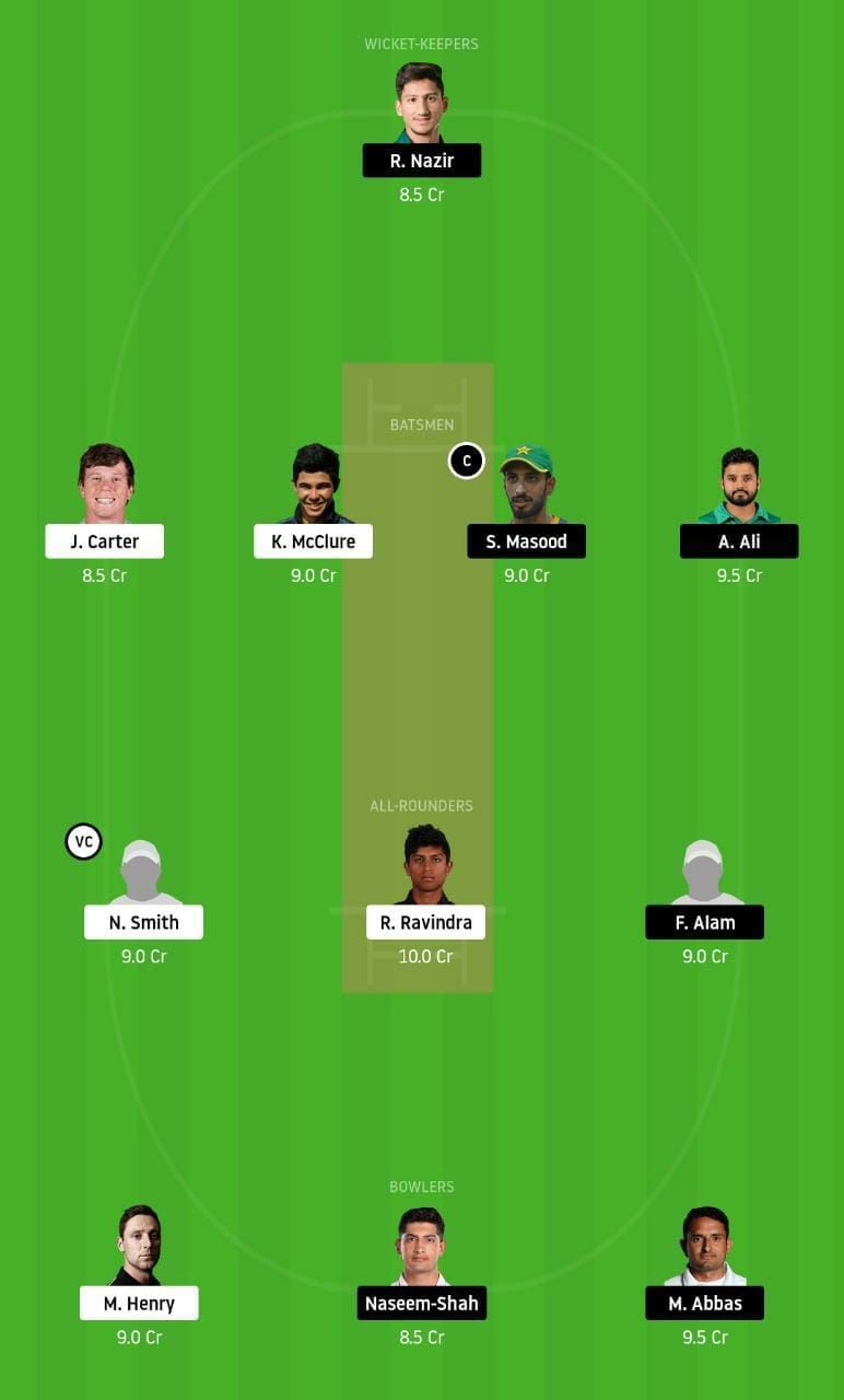 Fantasy Suggestion #1: R Nazir, Azhar Ali, J Carter, K McClure, S Masood, F Alam, N Smith, R Ravindra, M Henry, M Abbas and N Shah