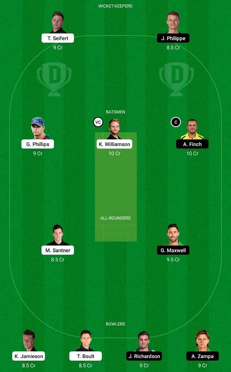 Fantasy Suggestion #1: Tim Seifert, Josh Philippe, Glenn Phillips, Kane Williamson, Aaron Finch, Mitchell Santner, Glenn Maxwell, Kyle Jamieson, Trent Boult, Jhye Richardson and Adam Zampa