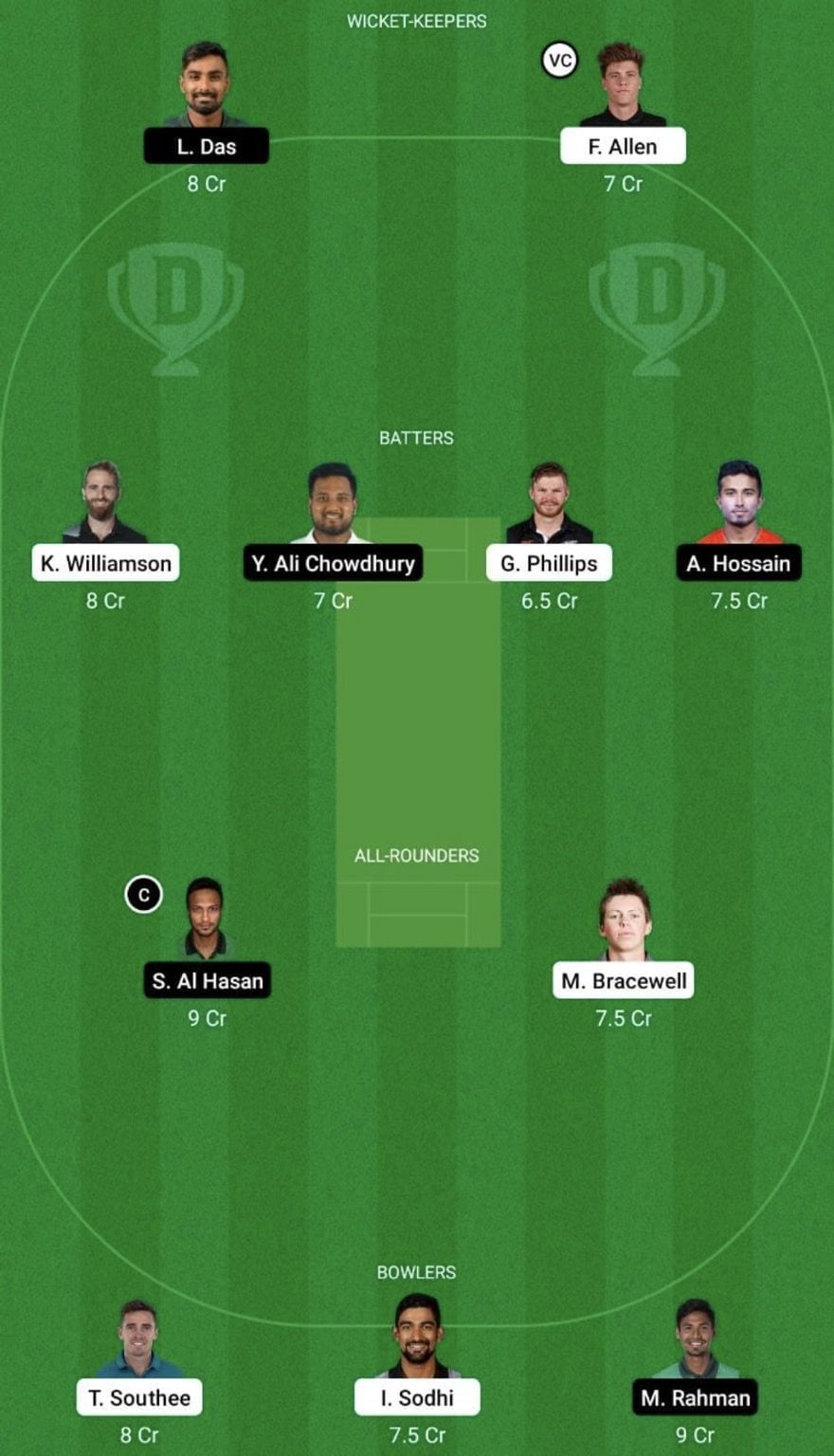 Bowlers: Tim Southee, Ish Sodhi, Mustafizur Rahman