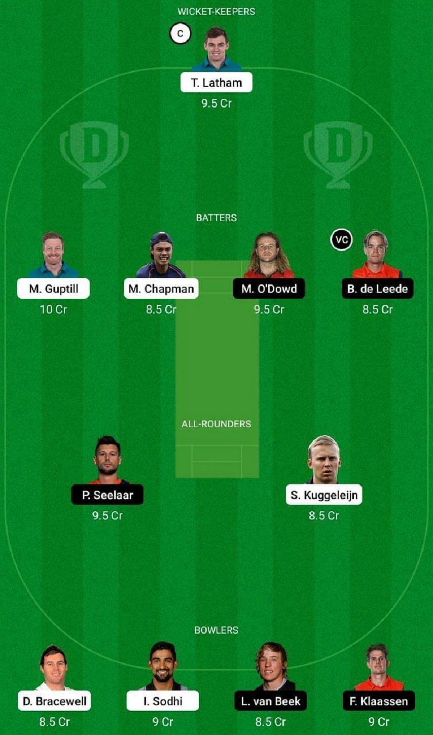 Fantasy Suggestion #2: Tom Latham, Max O'Dowd, Martin Guptill, Mark Chapman, Bas de Leede, Pieter Seelaar, Logan van Beek, Scott Kuggeleijn, Ish Sodhi, Doug Bracewell and Fred Klaassen.