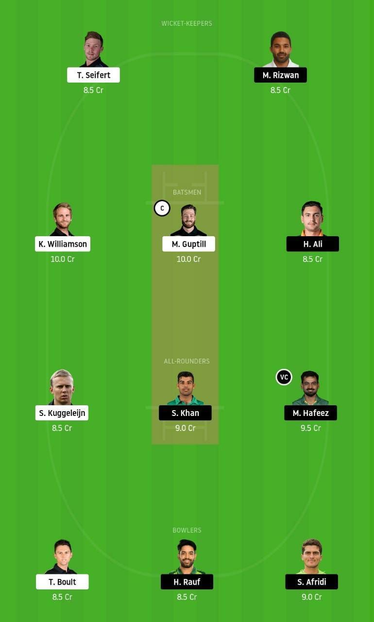 Fantasy Suggestion #1: Tim Seifert, Mohd Rizwan, Martin Guptill, Haider Ali, Kane Williamson, Scott Kuggeleijn, Shadab Khan, Mohd Hafeez, Haris Rauf, Trent Boult and Shaheen Afridi