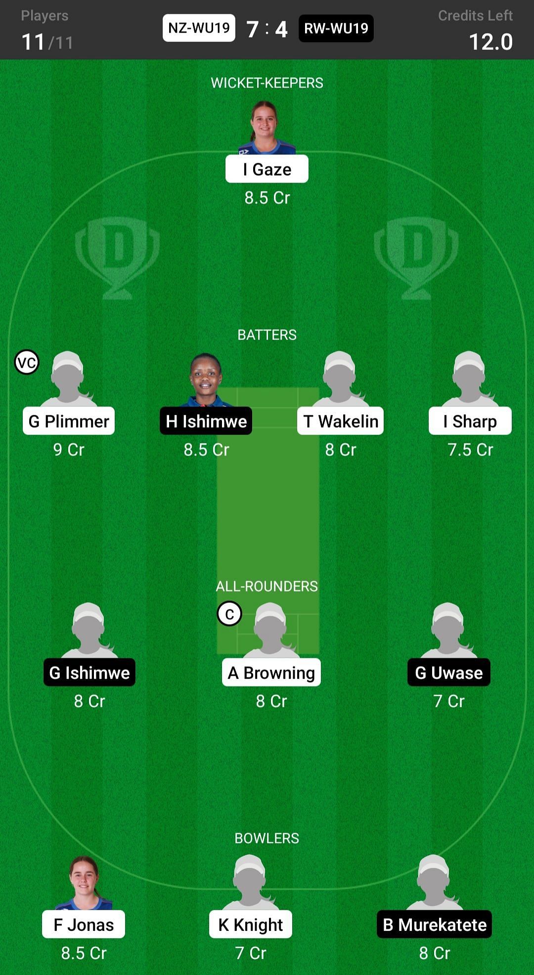 NZ-W U19 vs RW-W U19 match captain and vice-captain choices