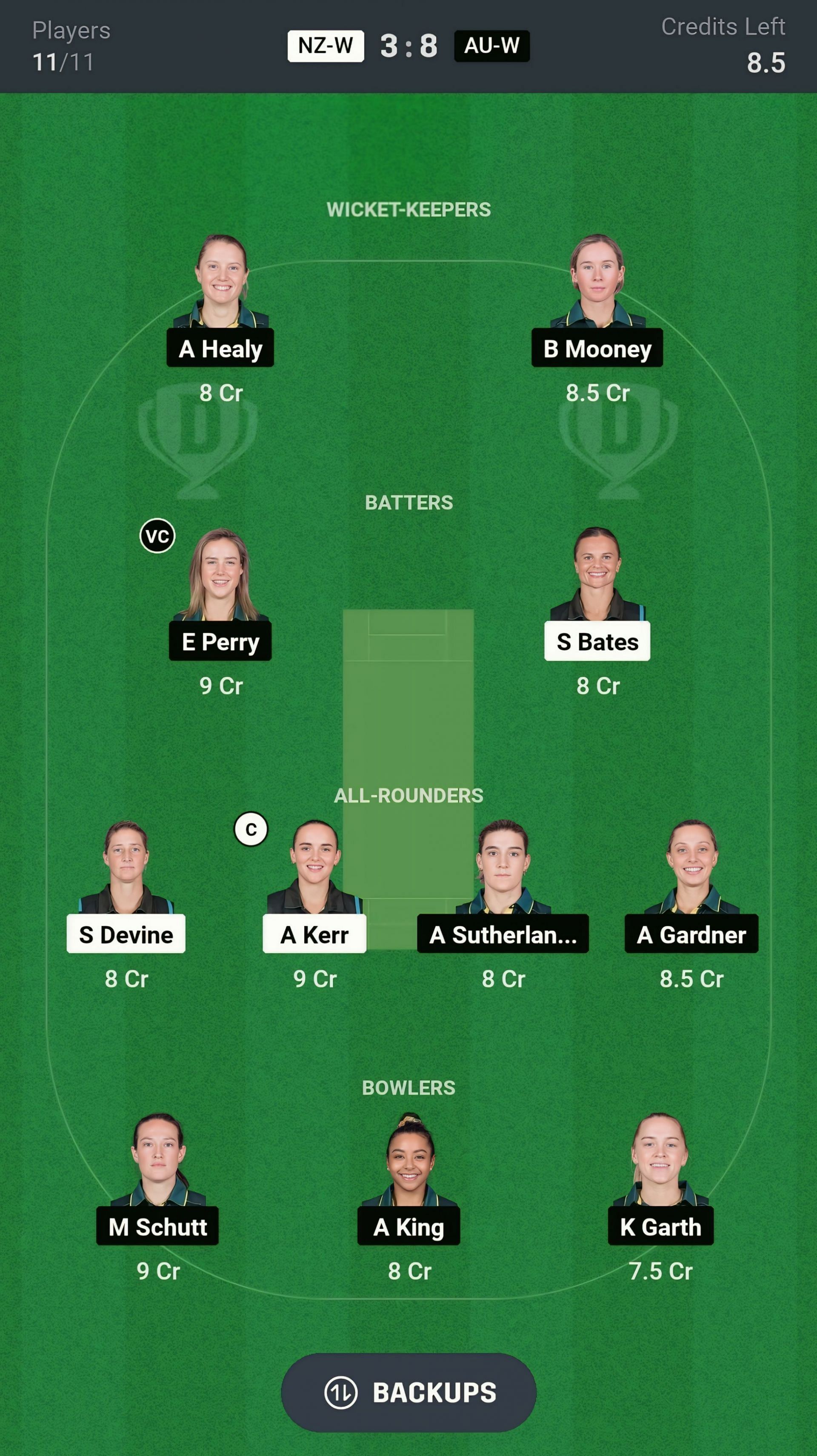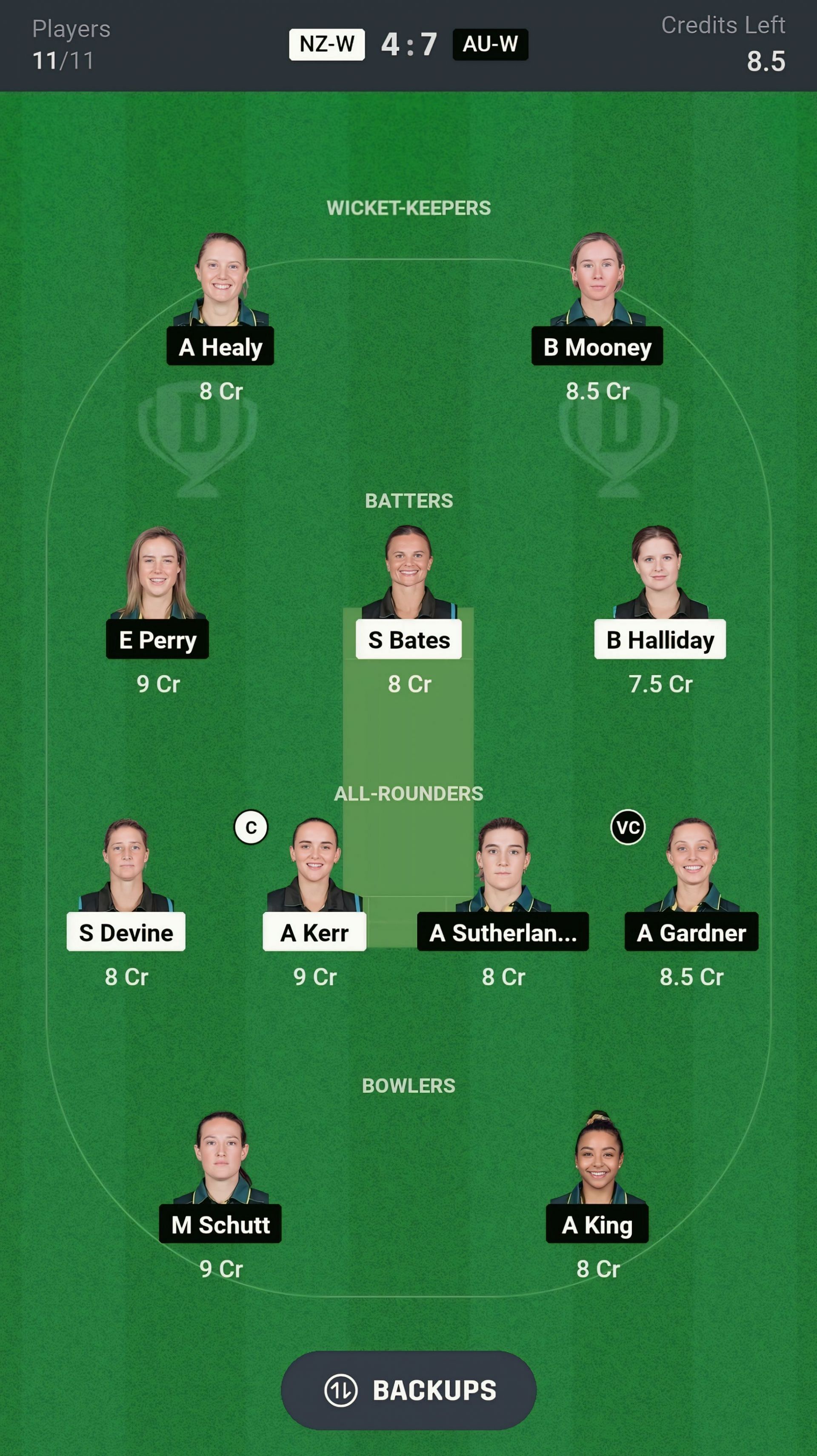 Ashleigh Gardner and Amelia Kerr are the best all-rounder picks for the Dream11 team. Both will play a crucial role for their teams in today's match. Amelia Kerr will bat in top order and complete her quota of overs. Annabel Sutherland is another good all-rounder pick for today's match. She will bat in the middle order and complete her quota of overs in today's match.