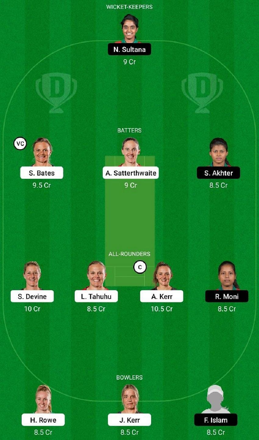 Fantasy Suggestion #2: Nigar Sultana, Suzie Bates, Amy Satterthwaite, Sharmin Akhter, Sophie Devine, Lea Tahuhu, Amelia Kerr, Ritu Moni, Hannah Rowe, Jess Kerr and Fariha Islam.