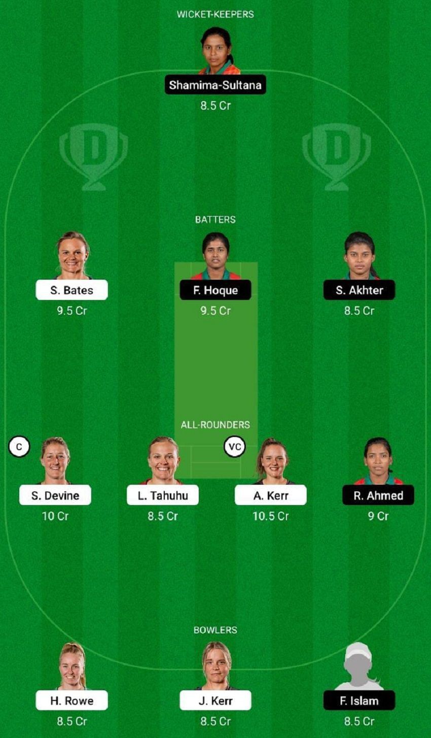 Jess Kerr: Jess Kerr had a decent outing in the previous game, scoring some useful runs lower down the order as well. Her ability to swing the ball both ways should hold her in good stead and possibly yield a wicket or two as well. Given her recent form in the shorter formats, Kerr is a good addition to your NZ-W vs BD-W Dream11 fantasy team.