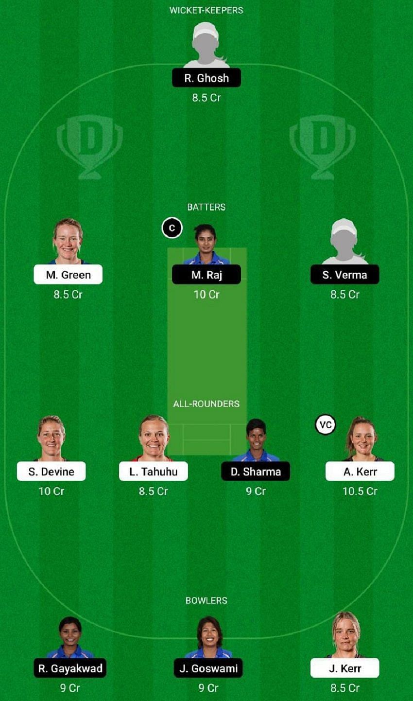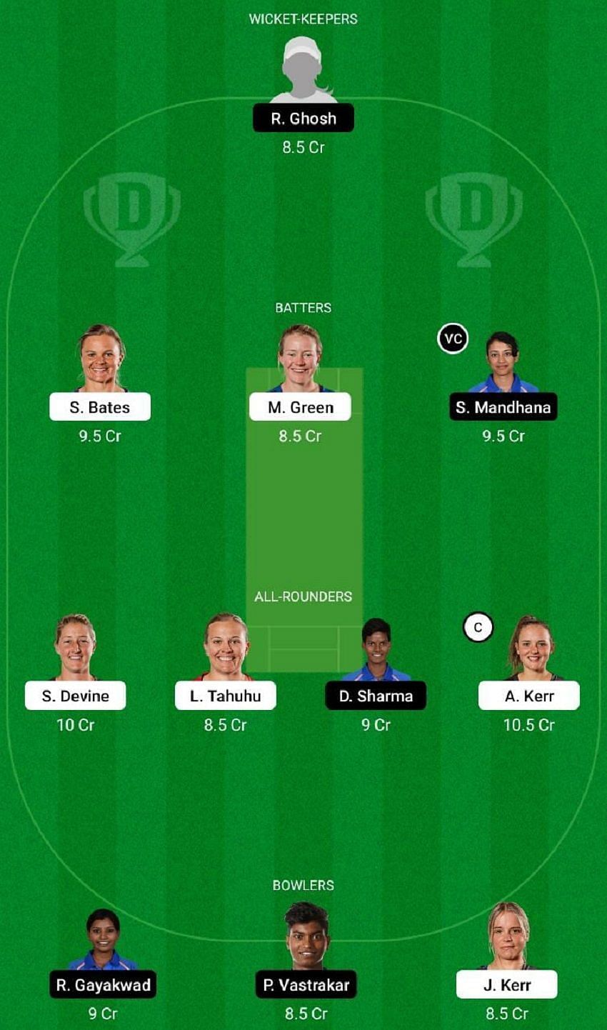 Fantasy Suggestion #1: Richa Ghosh, Suzie Bates, Maddy Green, Smriti Mandhana, Sophie Devine, Lea Tahuhu, Deepti Sharma, Amelia Kerr, Rajeshwari Gayakwad, Pooja Vastrakar and Jess Kerr.