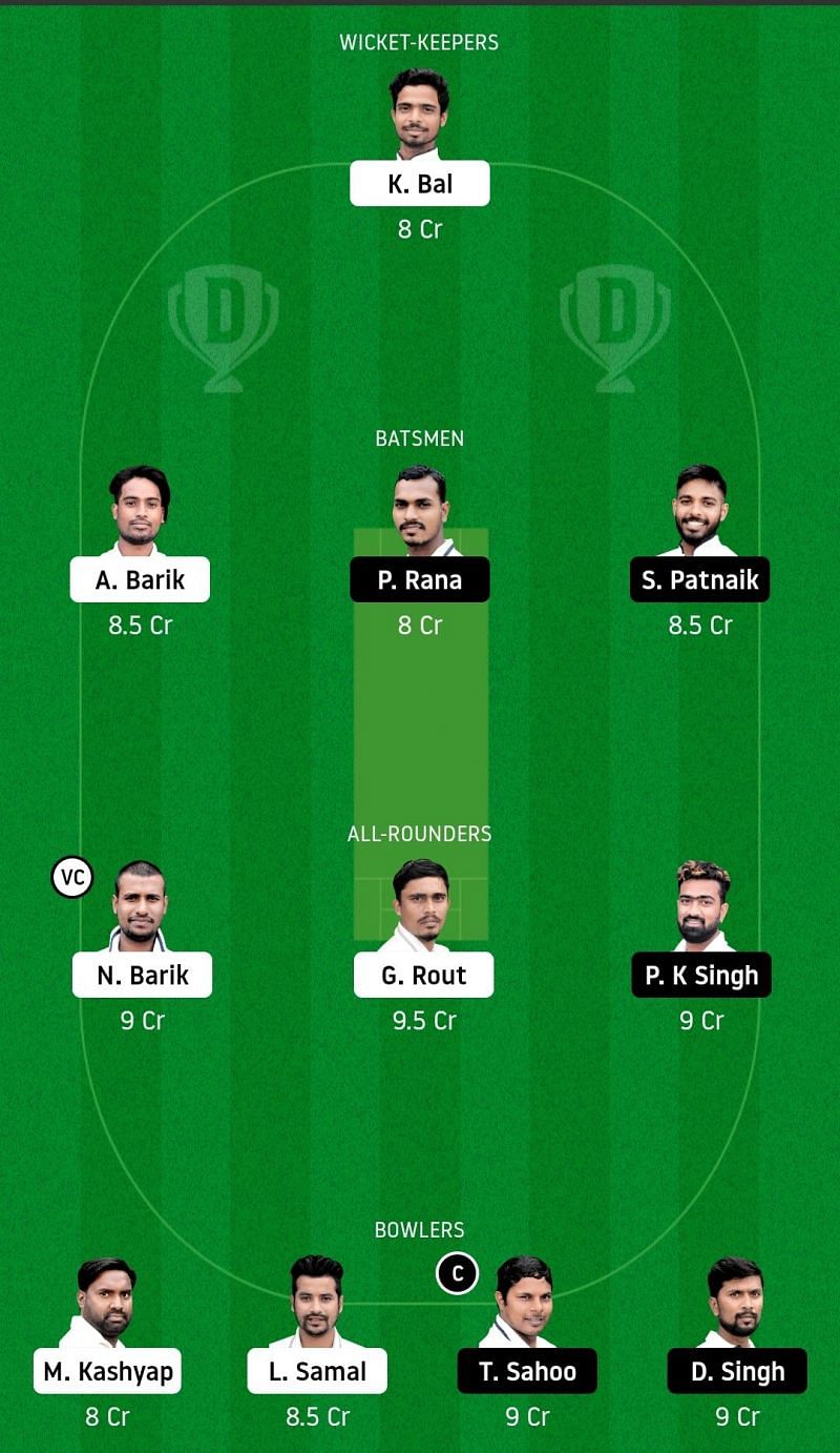 Fantasy Suggestion #1: Kshyama Bal, Abhijit Barik, Prasanta Rana, Sandeep Pattnaik, Nirbishankar Barik, Girjia Rout, Prayash Singh, Manoj Kashyap, Lagnajit Samal, Tukuna Sahoo, Dhiraj Singh