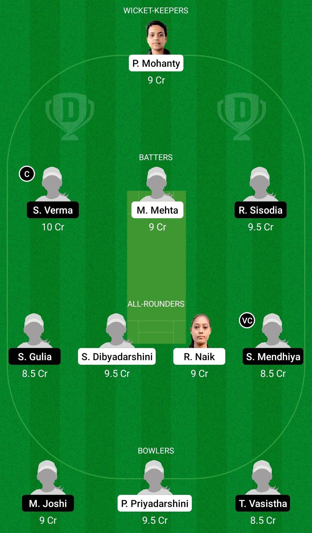Fantasy Suggestion #1: Pragyan P Mohanty, Bharti Kashyap, Shafali Verma, Madhuri Mehta, Reema Sisodia, Rameswari Naik, Sushree Dibyadarshini, Sonia Mendhiya, Mansi Joshi, Priyanka Priyadarshini, Priyanka Sharma