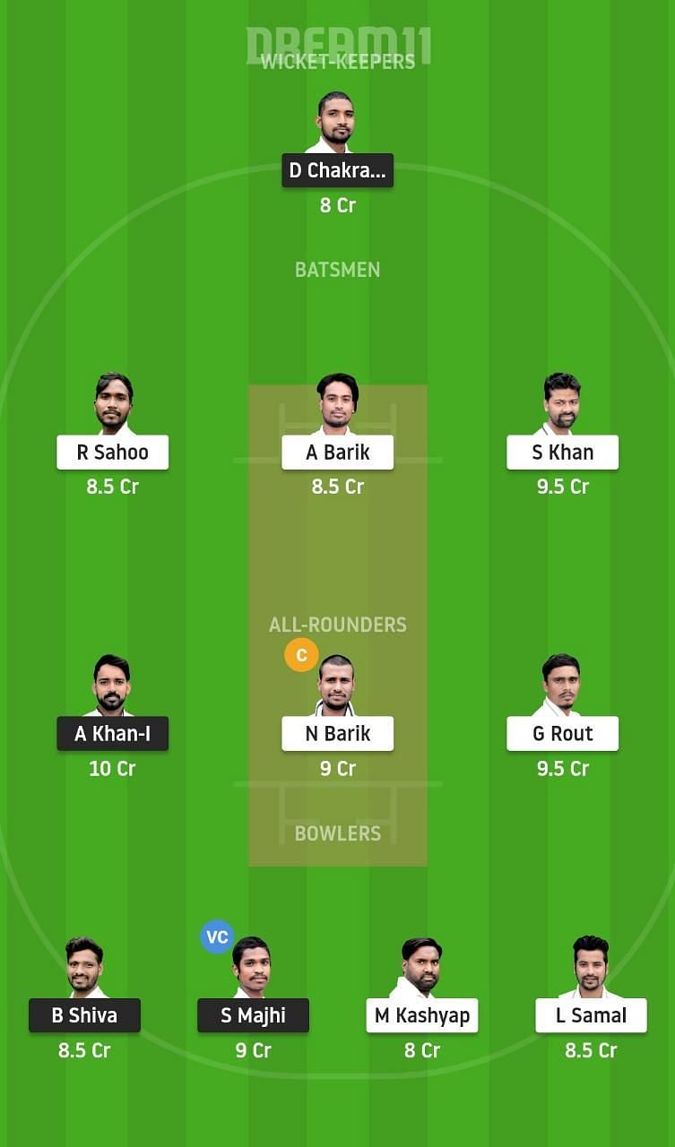 Fantasy Suggestion #1: Dibyashakti Chakrabarty, Rasmi Sahoo, Abhijit Barik, Shamsul Khan, Nirbishankar Barik, Girija Rout, Amin Khan, Shekhar Majhi, Manoj Kashyap, Lagnajit Samal, B Shiva.