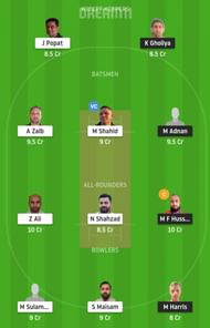 Fantasy Suggestion #1: J Popat, K Gholiya, A Zaib, M Shahid, M Adnan, Z Ali, N Shahzad, M F Hussain, M Sulaman, M Harris, S Maisam