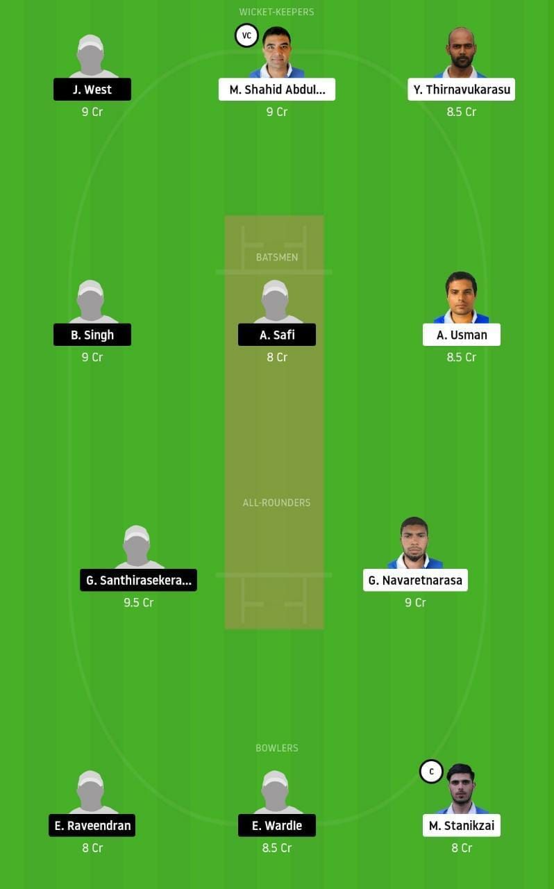 Fantasy Suggestion #1: M Shahid, Y Thirnavukarasu, J West, A Usman, B Singh, A Safi, G Santhirasekaran, G Navaretnarasa, E Wardle, E Raveendran and M Stanikzai