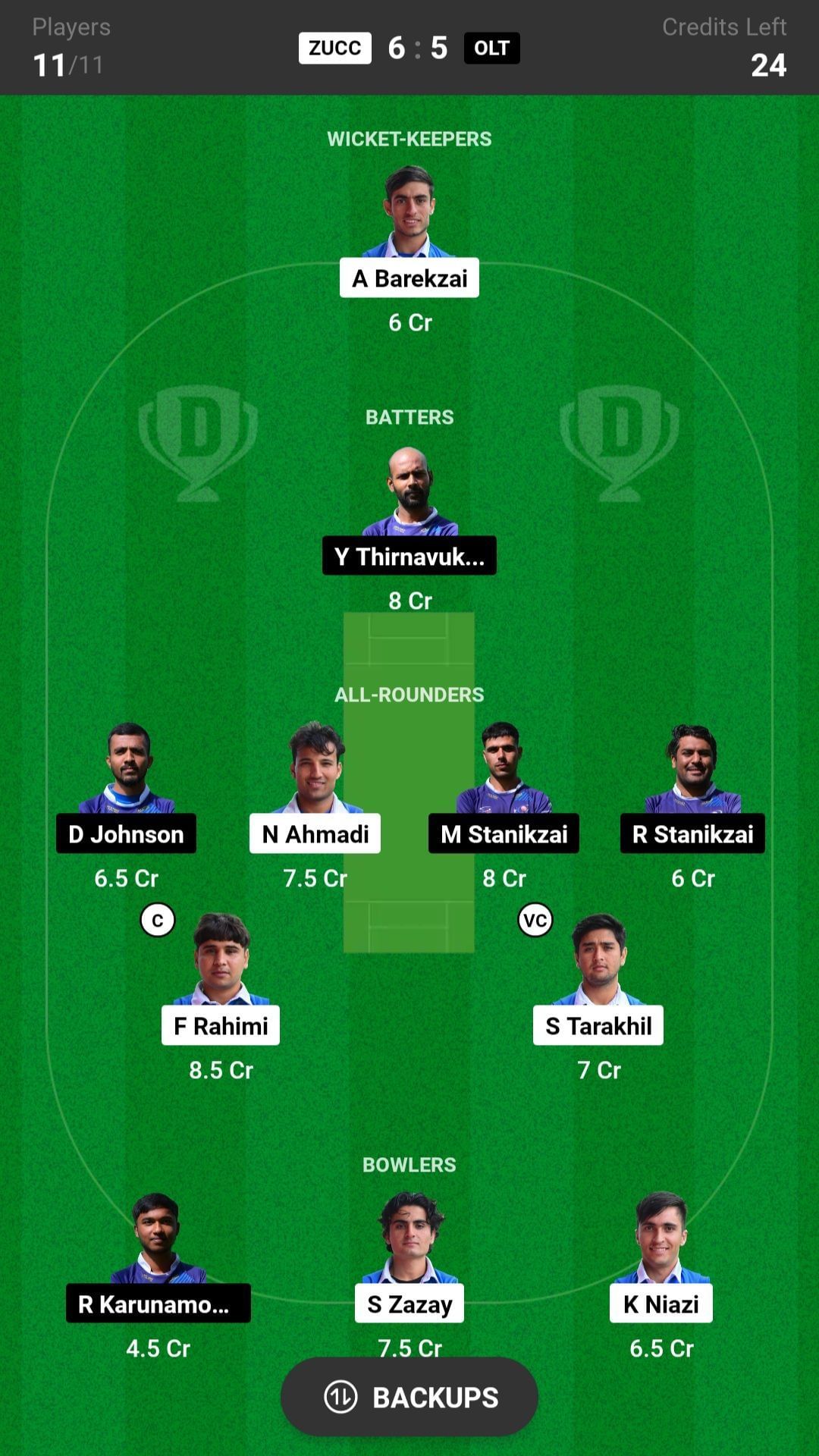 Olten vs Zurich Crickets CC Dream11 Prediction Today, Grand League