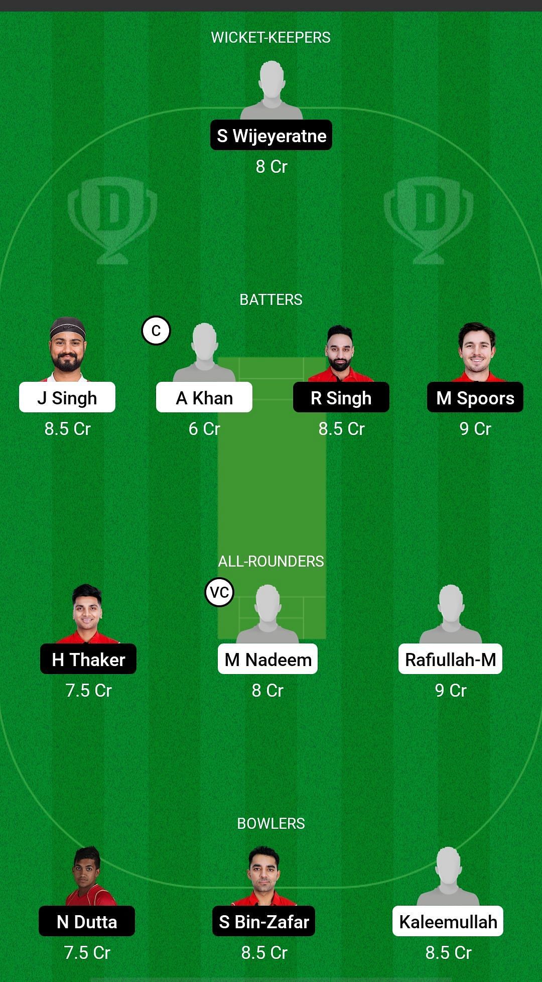 Bowlers: Saad Bin Zafar, Kaleemullah, Nikhil Dutta.