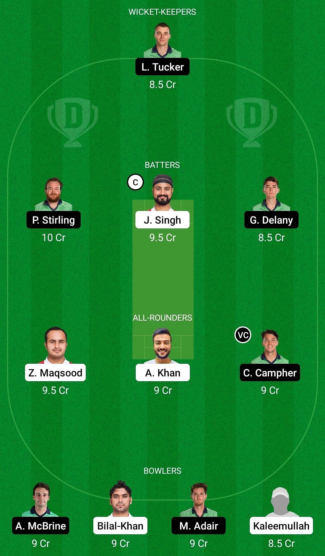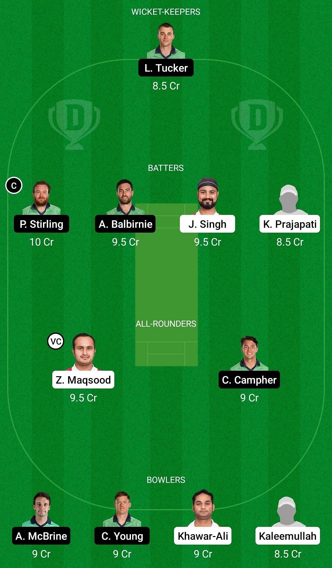 Fantasy Suggestion #1: Lorcan Tucker, Paul Stirling, Andrew Balbirnie, Jatinder Singh, Kashyap Prajapati, Zeeshan Maqsood, Curtis Campher, Andy McBrine, Craig Young, Khawar Ali, Kaleemullah
