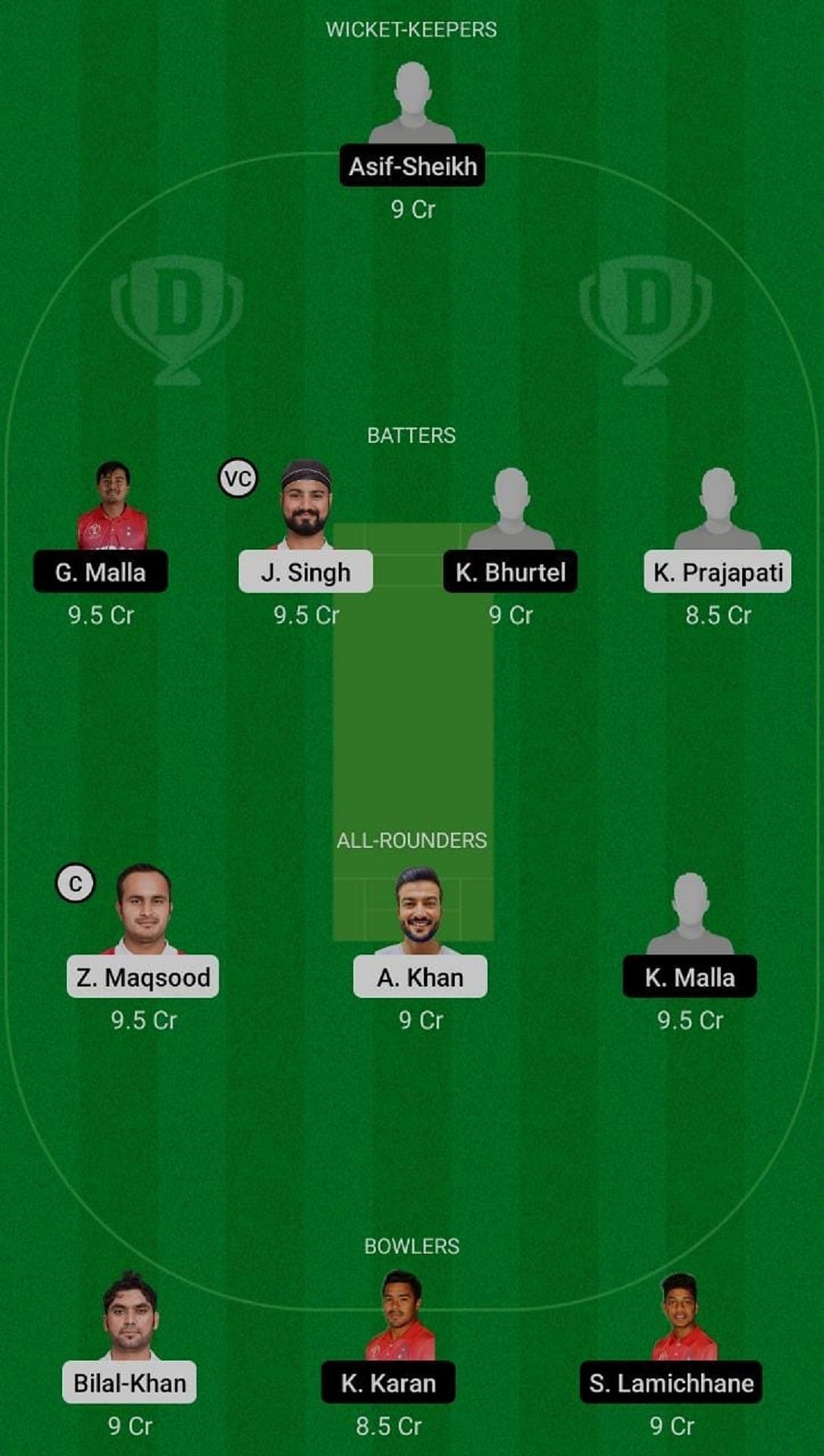 Fantasy Suggestion #2: Asif Sheikh, Gyanendra Malla, Jatinder Singh, Kashyap Prajapati, Ayaan Khan, Kushal Malla, Bilal Khan, Zeeshan Maqsood, Karan KC, Khawar Ali, Sandeep Lamichhane