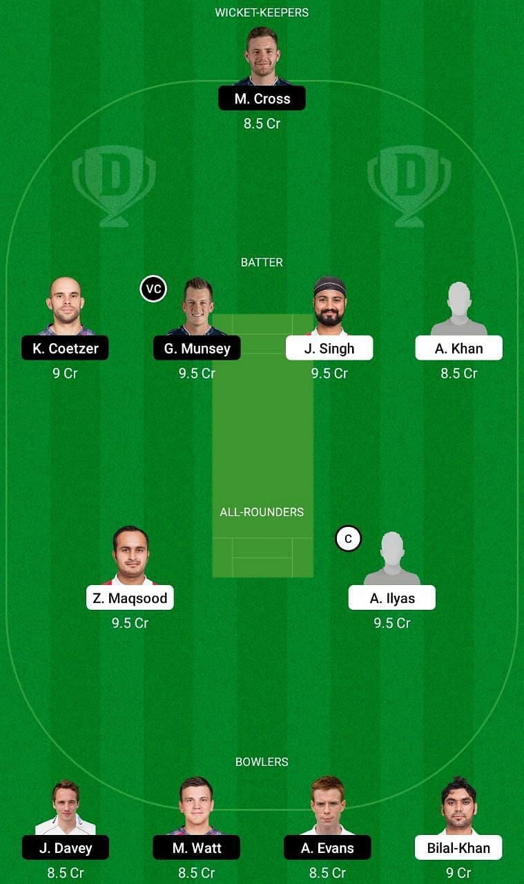 Fantasy Suggestion #2: Matt Cross, George Munsey, Ayan Khan, K Coetzer, Z Maqsood, Jatinder Singh, Aqib Ilyas, Bilal Khan, Josh Davey, Alasdair Evans and Mark Watt