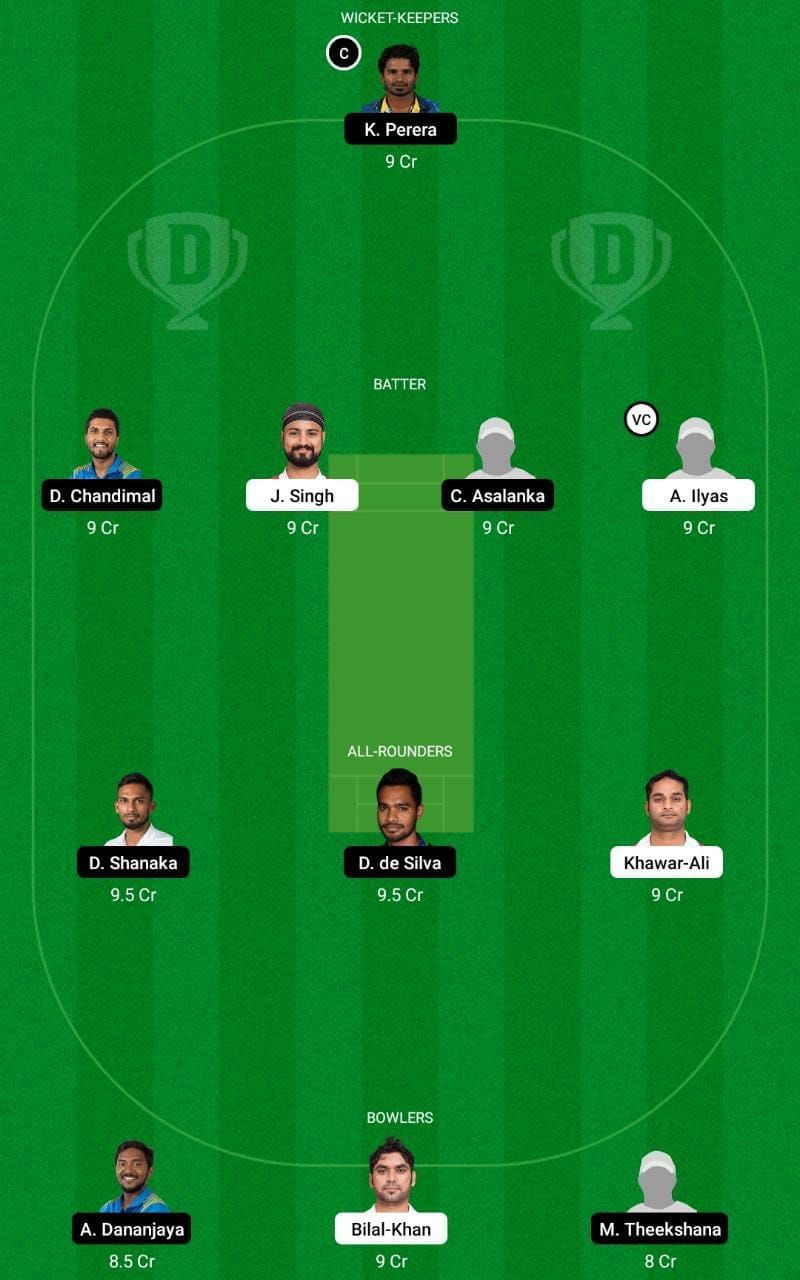 Fantasy Suggestion #1: Kusal Perera, Aqib Ilyas, Charith Asalanka, Dinesh Chandimal, Jatinder Singh, Dasun Shanaka, Dhananjaya de Silva, Khawar Ali, Akila Dananjaya, Bilal Khan and Maheesh Theekshana