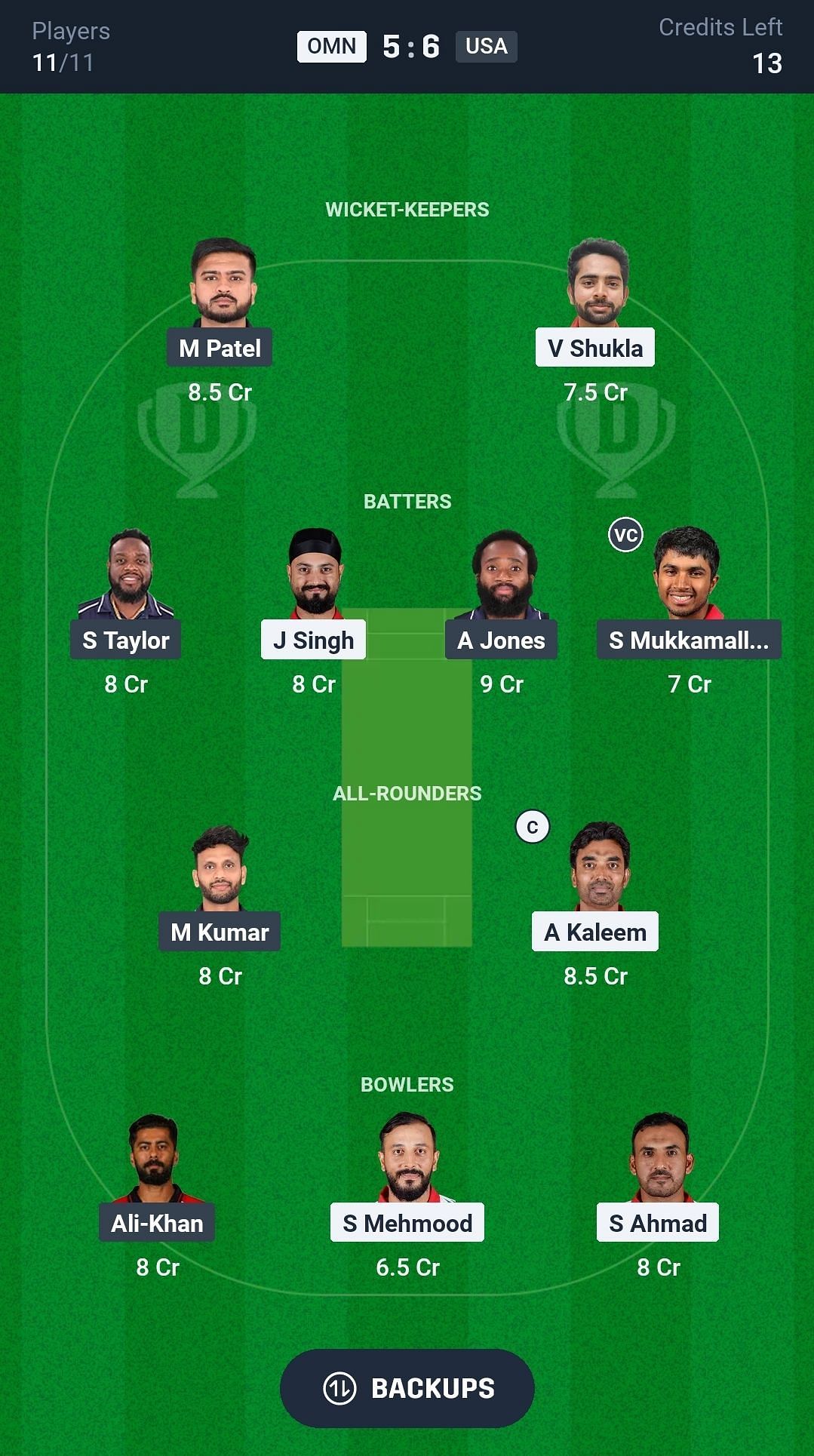 Oman vs United States of America Dream11 Prediction Today, Grand League