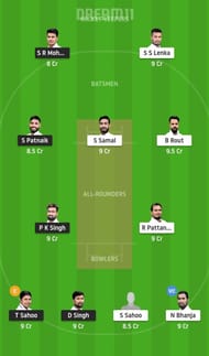 Fantasy Suggestion #1: Sujit Lenka, Sandeep Patnaik, Bikash Rout, Swastik Samal, Prayash K Singh, Rakesh Pattanaik, Deepak Behera, Tukuna Sahoo, Nauttam Bhanja, S Sahoo, Prasantha Rana.
