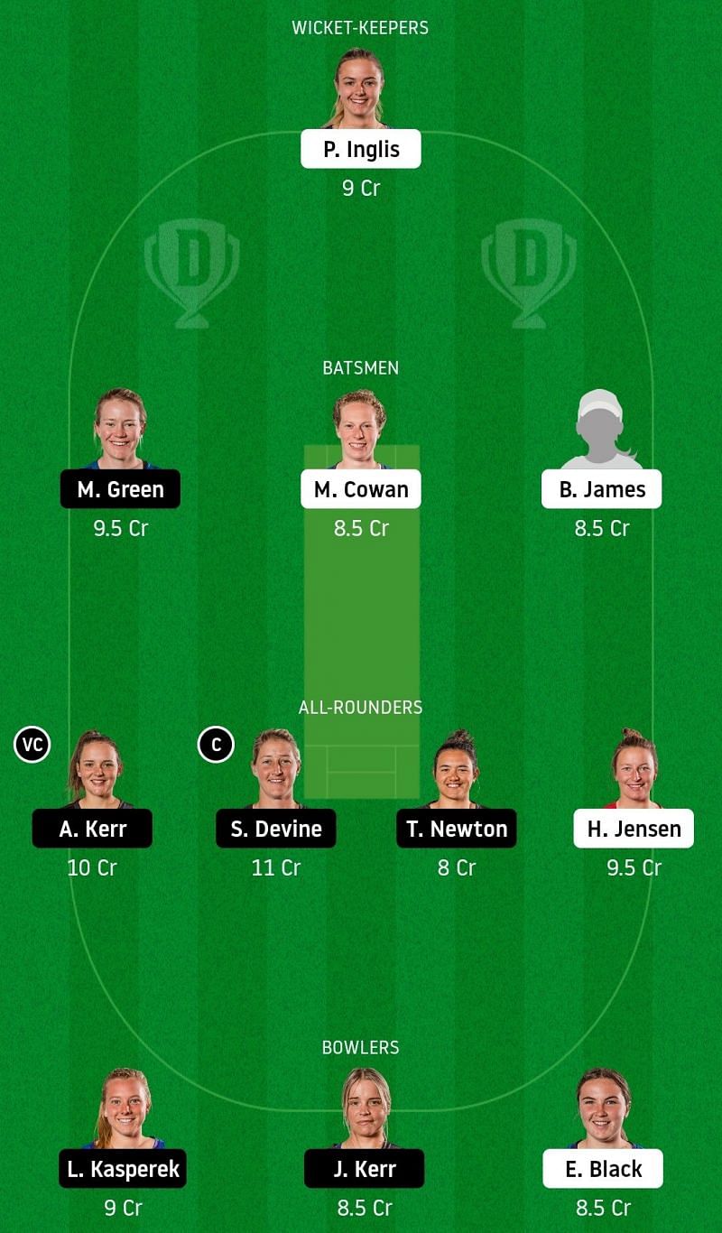 Fantasy Suggestion #1: Polly Inglis, Maddy Green, Millie Cowan, Bella Games, Amelia Kerr, Sophie Devine, Thamsyn Newton, Hayley Jensen, Leigh Kasperek, Jess Kerr, Emma Black