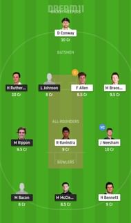 Fantasy Suggestion #1: Devon Conway, Hamish Rutherford, Llew Johnson, Finn Allen, Michael Bracewell, Rachin Ravindra, James Neesham, Michael Rippon, Matthew Bacon, Mitchell McClenaghan, Hamish Bennett