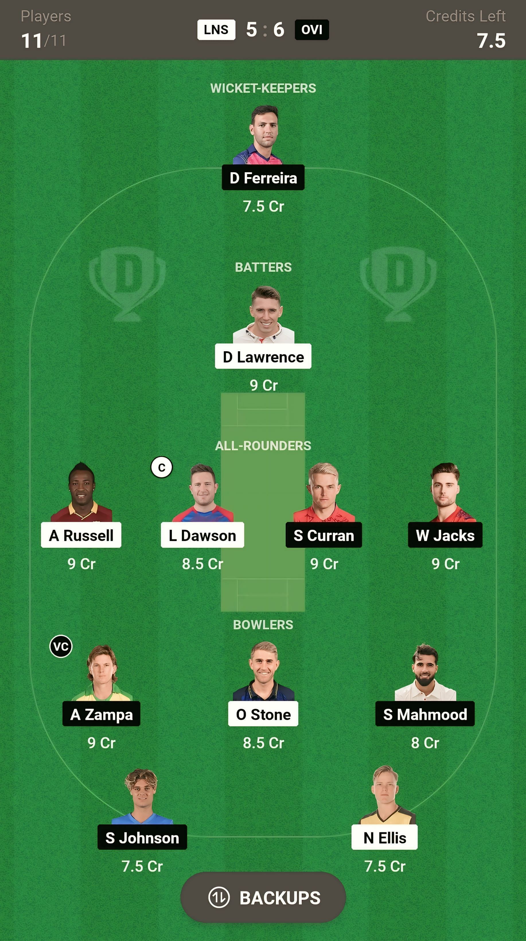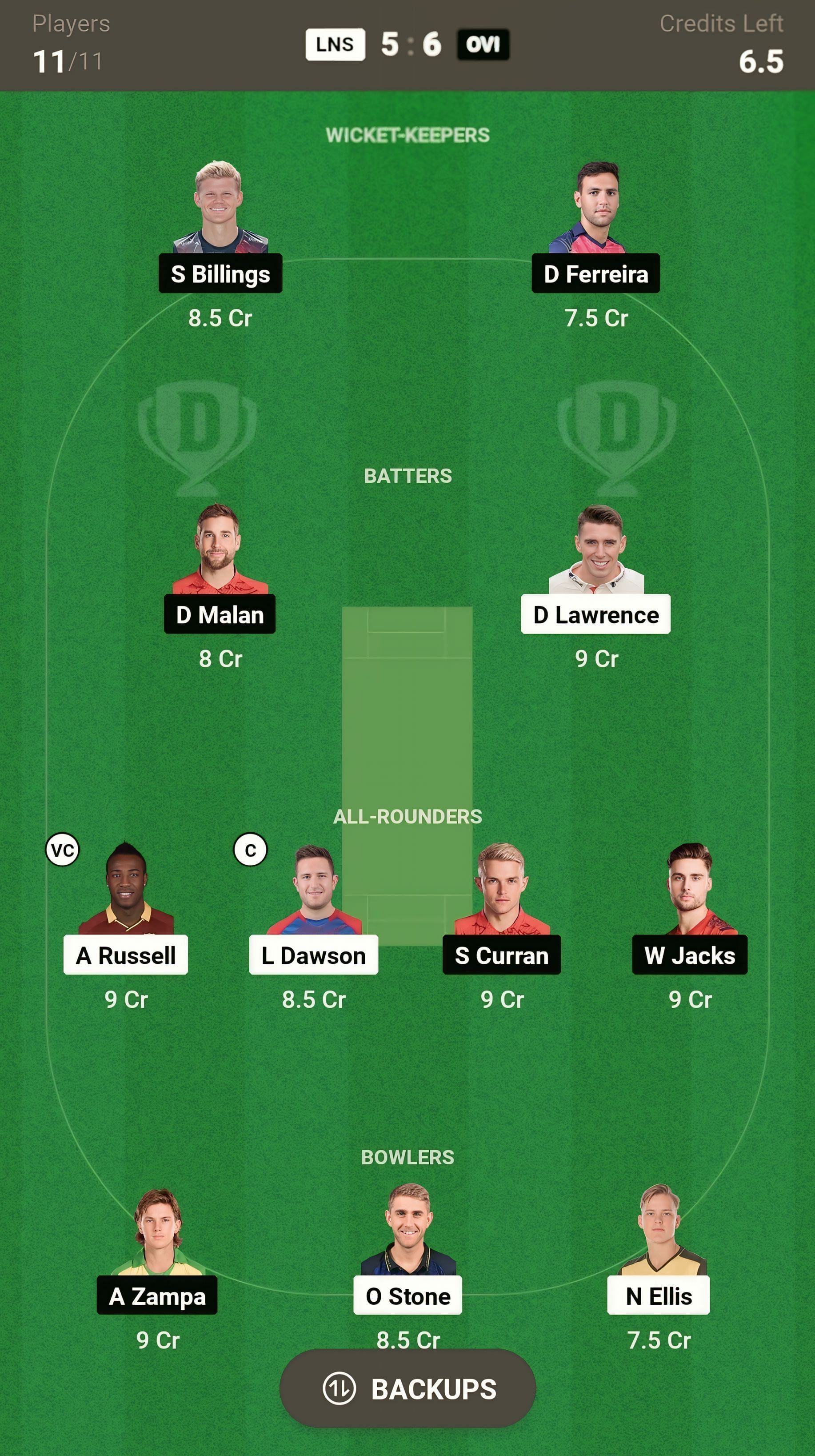 All-rounders: S Curran, W Jacks, A Russel, L Dawson