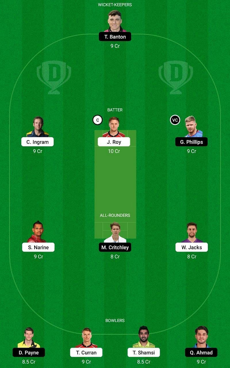 Fantasy Suggestion #1: Tom Banton, Jason Roy, Glenn Phillips, Colin Ingram, Matt Critchley, Sunil Narine, Will Jacks, Tom Curran, Qais Ahmad, David Payne and Tabraiz Shamsi