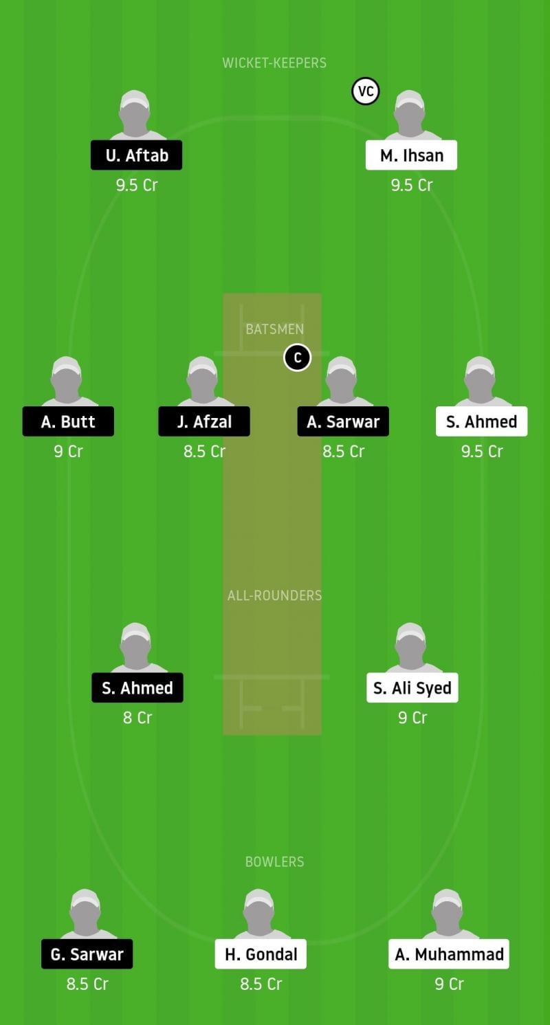 Fantasy Suggestion #1: Muhammad Ihsan, Umair Aftab, Asjad Butt, Jamshad Afzal, Adeel Sarwar, Shehroz Ahmed, Sarfraz Ahmed, Syed Shafaat Ali, Atif Muhammad, Hassan Gondal, Ghulam Sarwar.