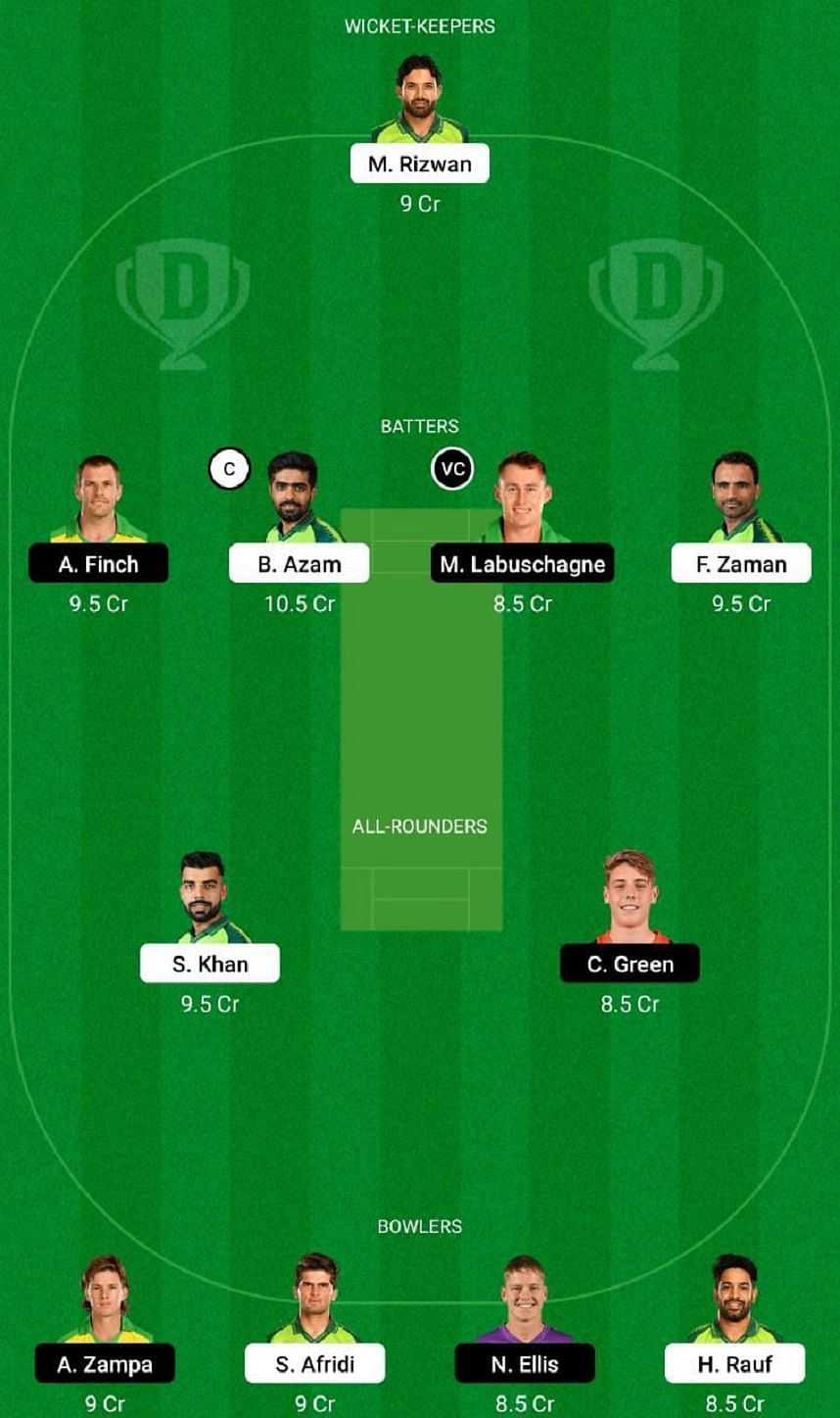 Fantasy Suggestion #1: Mohammad Rizwan, Aaron Finch, Babar Azam, Marnus Labuschagne, Fakhar Zaman, Cameron Green, Shadab Khan, Haris Rauf, Shaheen Afridi, Nathan Ellis and Adam Zampa.