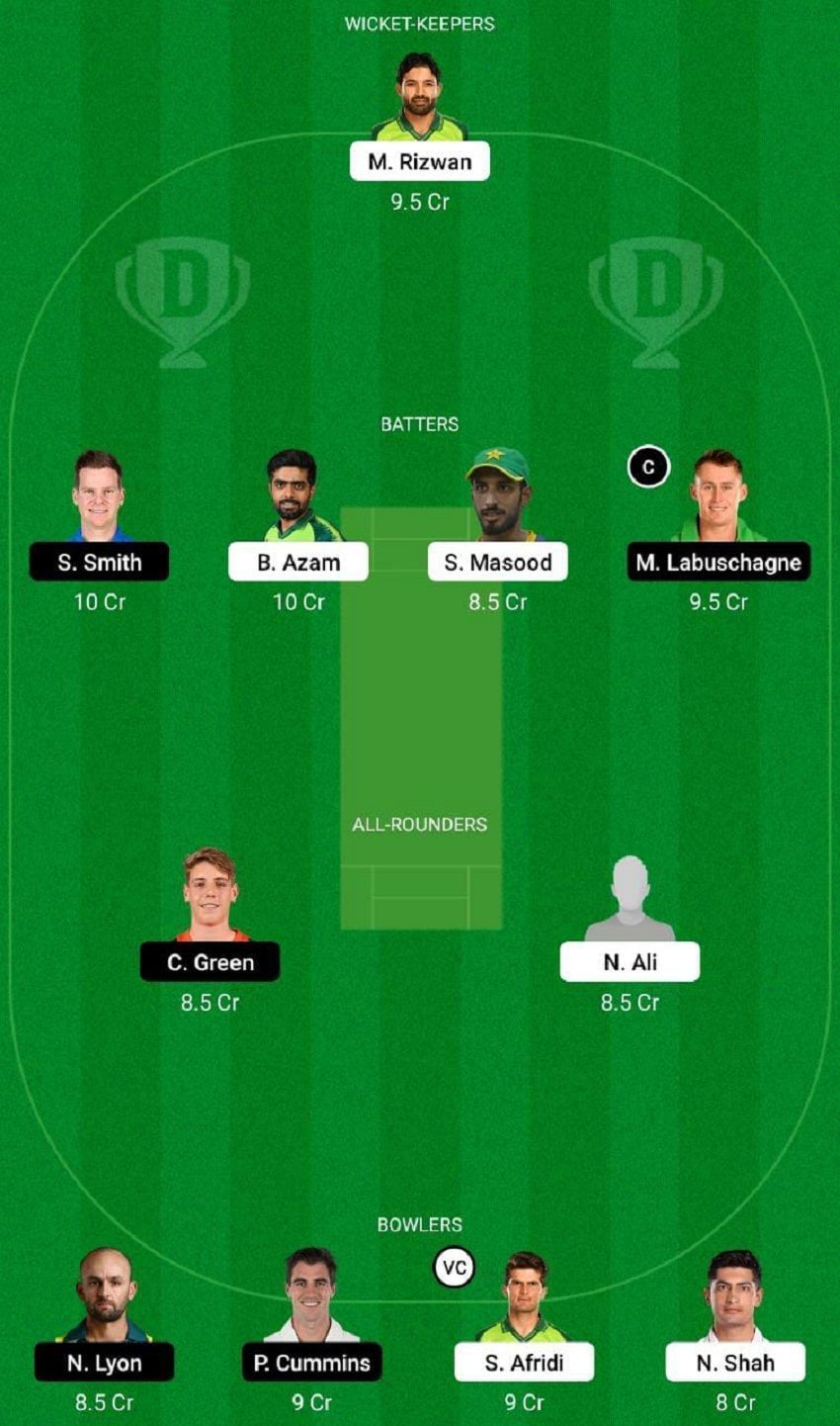 Fantasy Suggestion #1: Mohammad Rizwan, Steve Smith, Babar Azam, Shan Masood, Marnus Labuschagne, Cameron Green, Nauman Ali, Nathan Lyon, Pat Cummins, Shaheen Afridi and Naseem Shah.