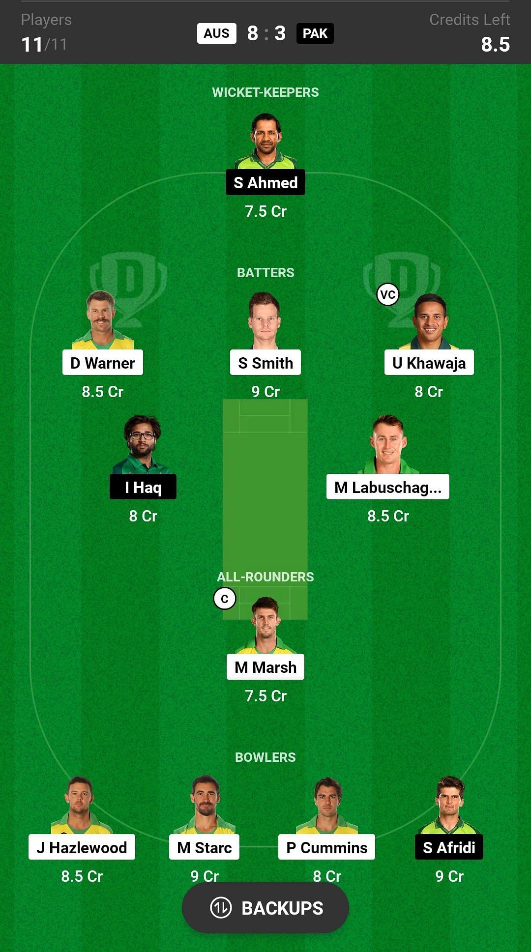 Bowlers: S Afridi, M Starc, P Cummins, J Hazlewood