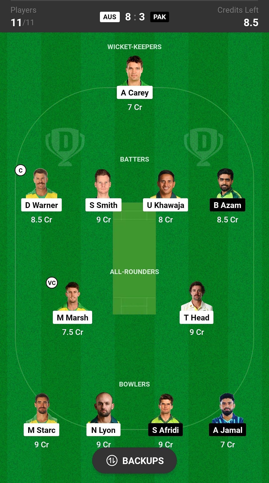 Bowlers: S Afridi, M Starc, N Lyon, A Jamal