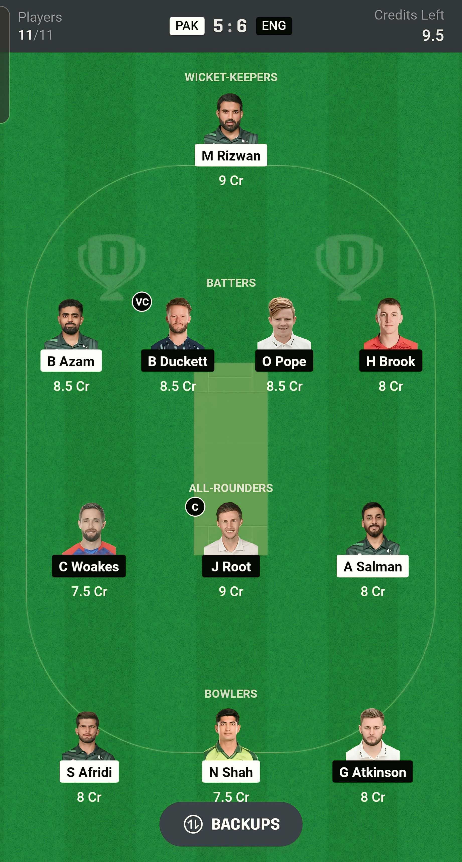 PAK vs ENG match captain and vice-captain choices