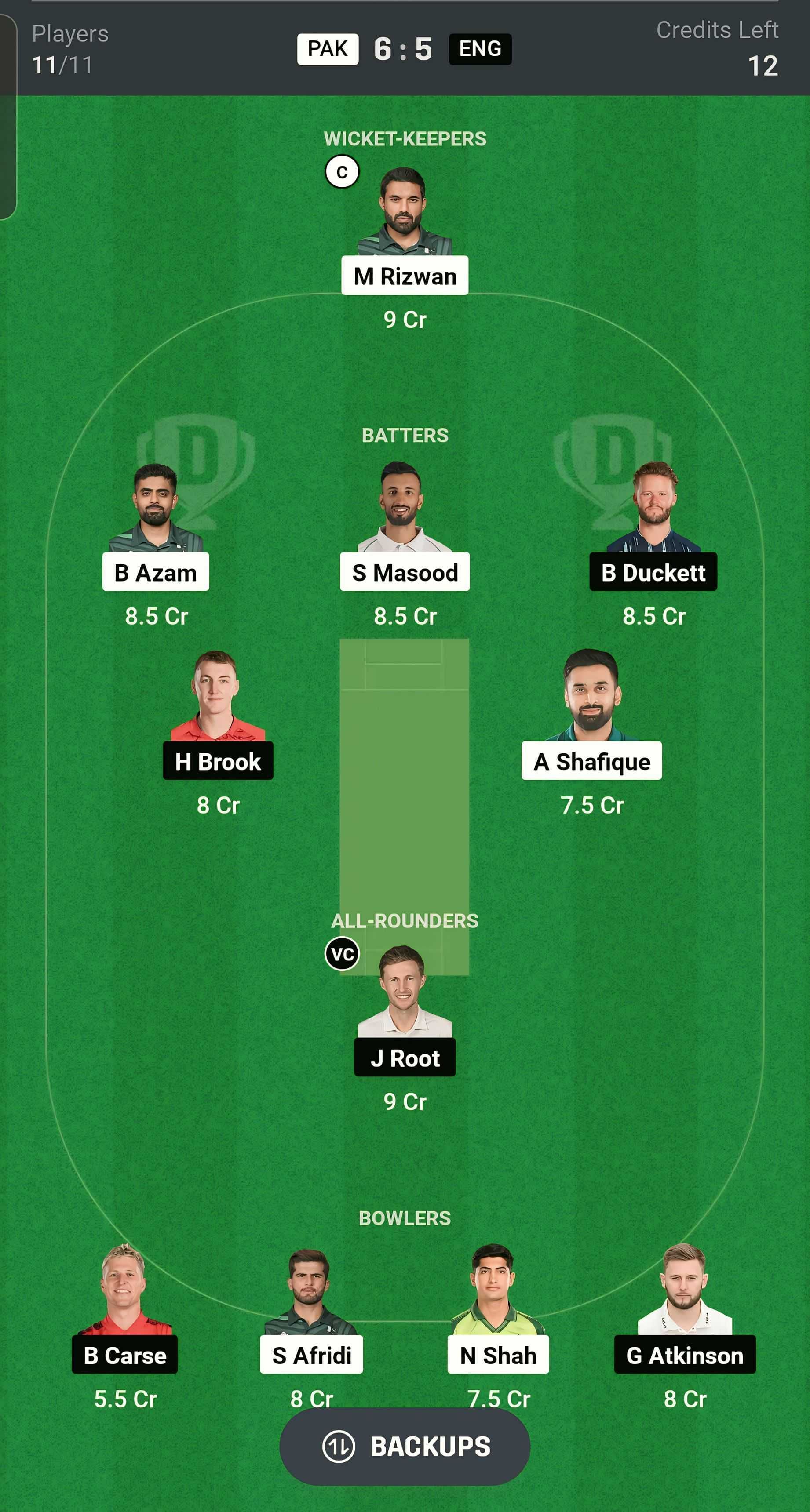 Batters: B Duckett, S Masood, A Shafique, H Brook, B Azam