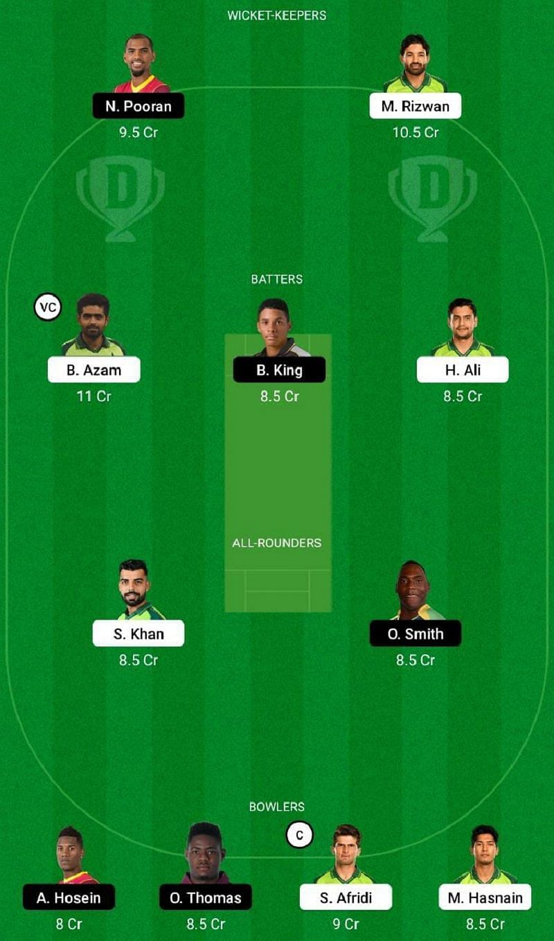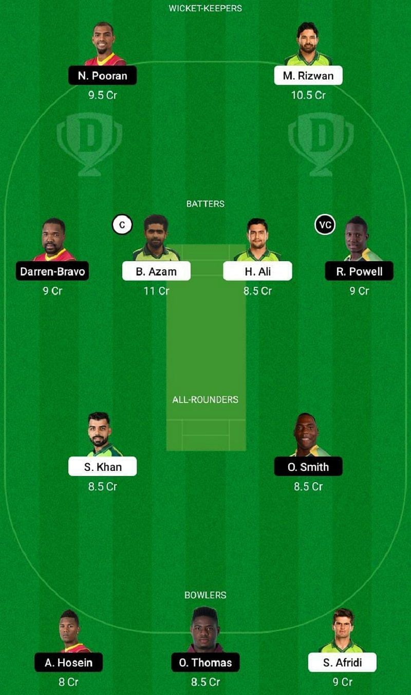 Captain: Babar Azam. Vice-captain: Rovman Powell.