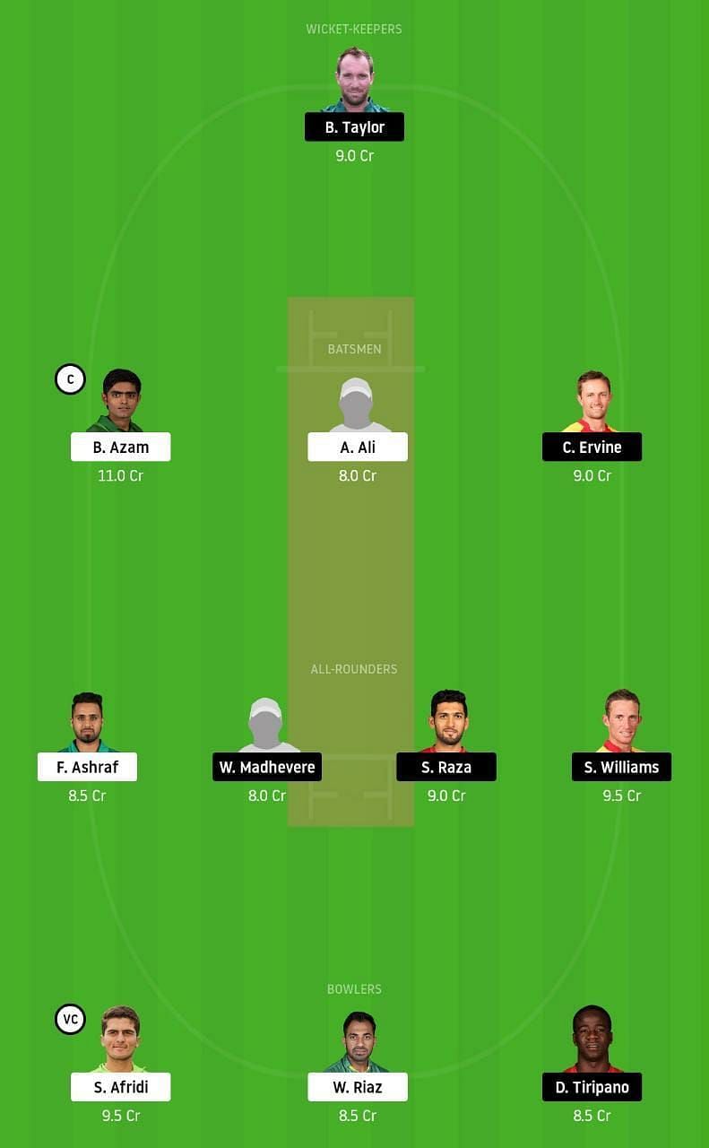 Fantasy Suggestion #1: Brendan Taylor, Babar Azam, Abid Ali, Craig Ervine, Faheem Ashraf, Wesley Madhevere, Sikandar Raza, Sean Williams, Wahab Riaz, Shaheen Afridi and Donald Tiripano.
