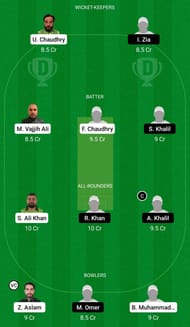 Alby Zalmi CF: Saad Anis, Sami Khalil, Azam Khalil (c), Ismaeel Zia (wk), Rahel Khan, Qudratullah Mir Afzal, Aman Zahid, Faseeh Choudhary, Munib Safi, Musab Omer, Fareed Khan