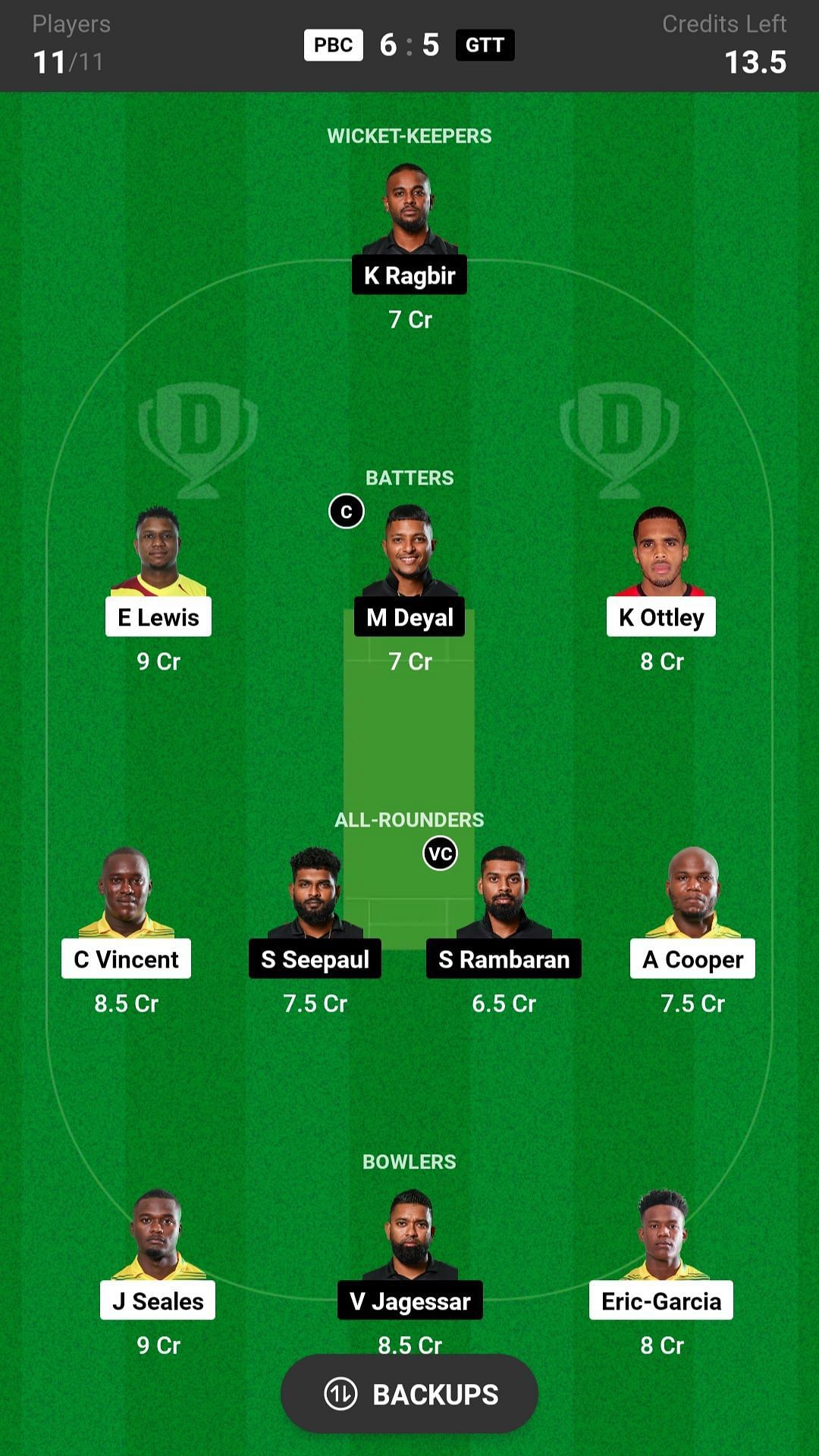 E Lewis and M Deyal are the two best batter picks for the Dream11 team. K Ottley played exceptionally well in the last series, so he is also a good pick for today's Dream11 fantasy team.