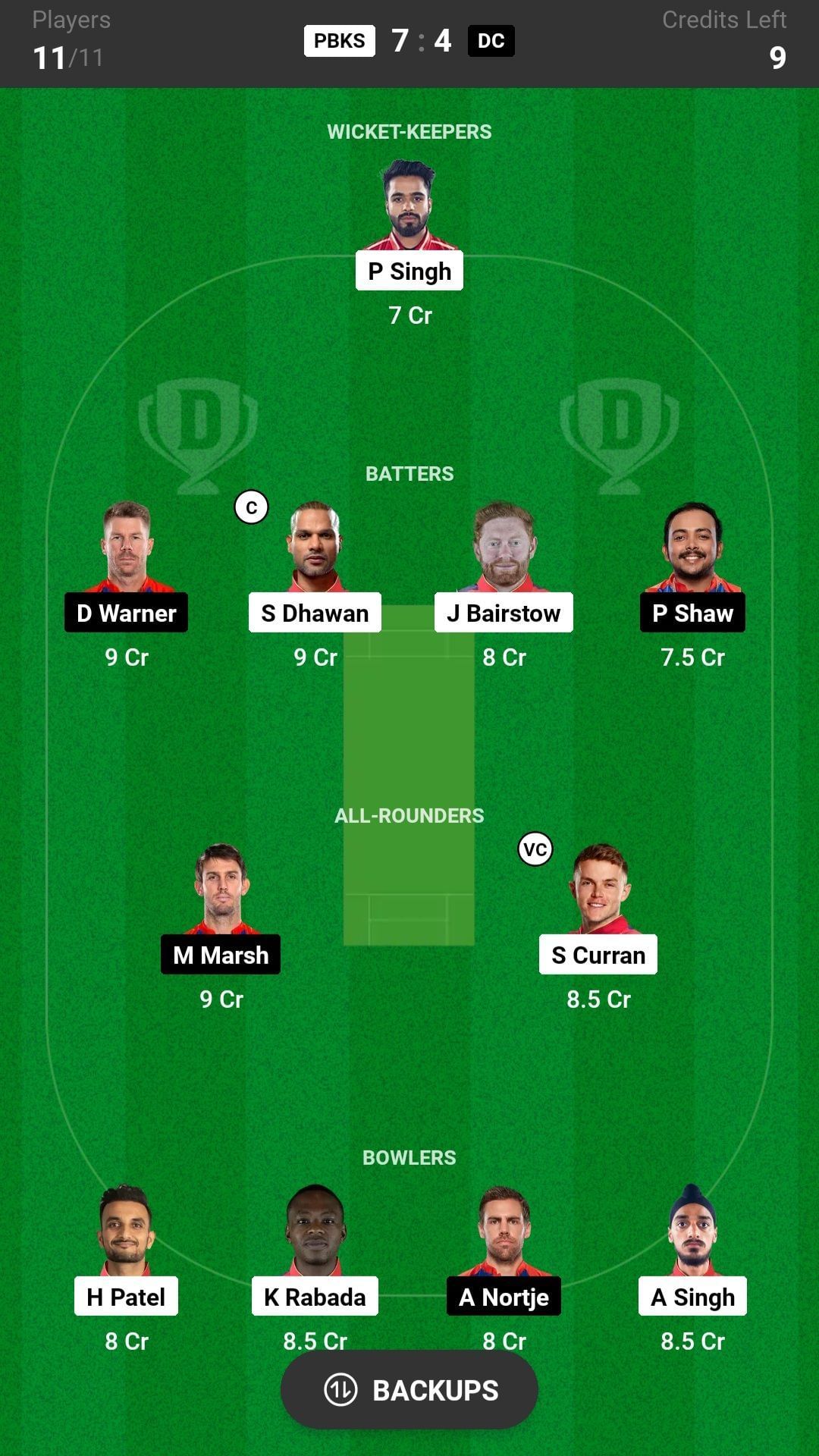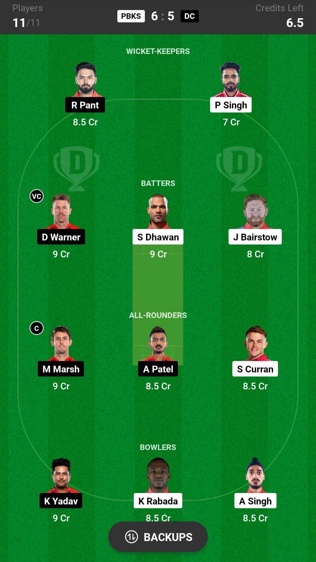 Punjab Kings vs Delhi Capitals Dream11 Prediction Today, Grand League