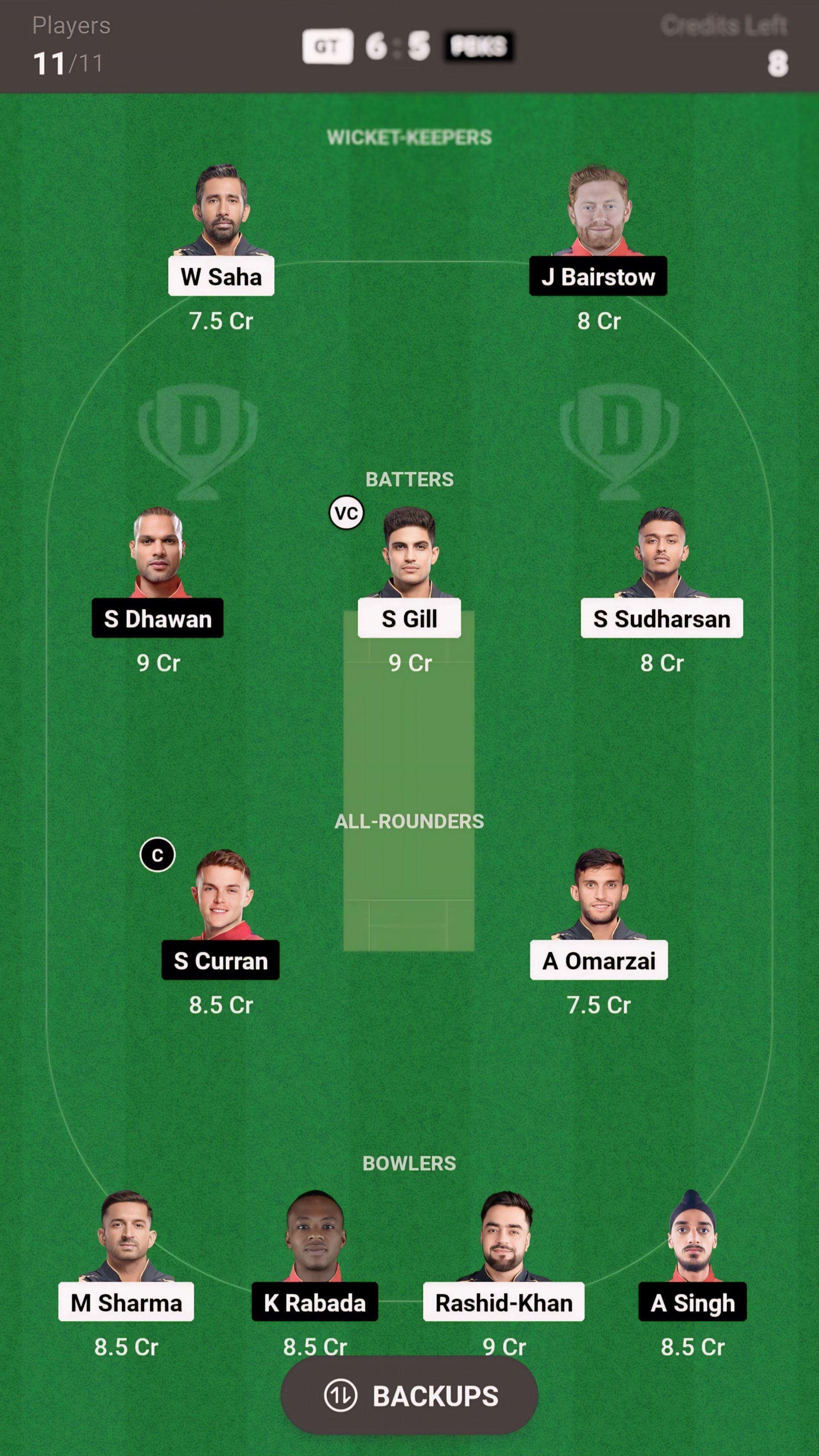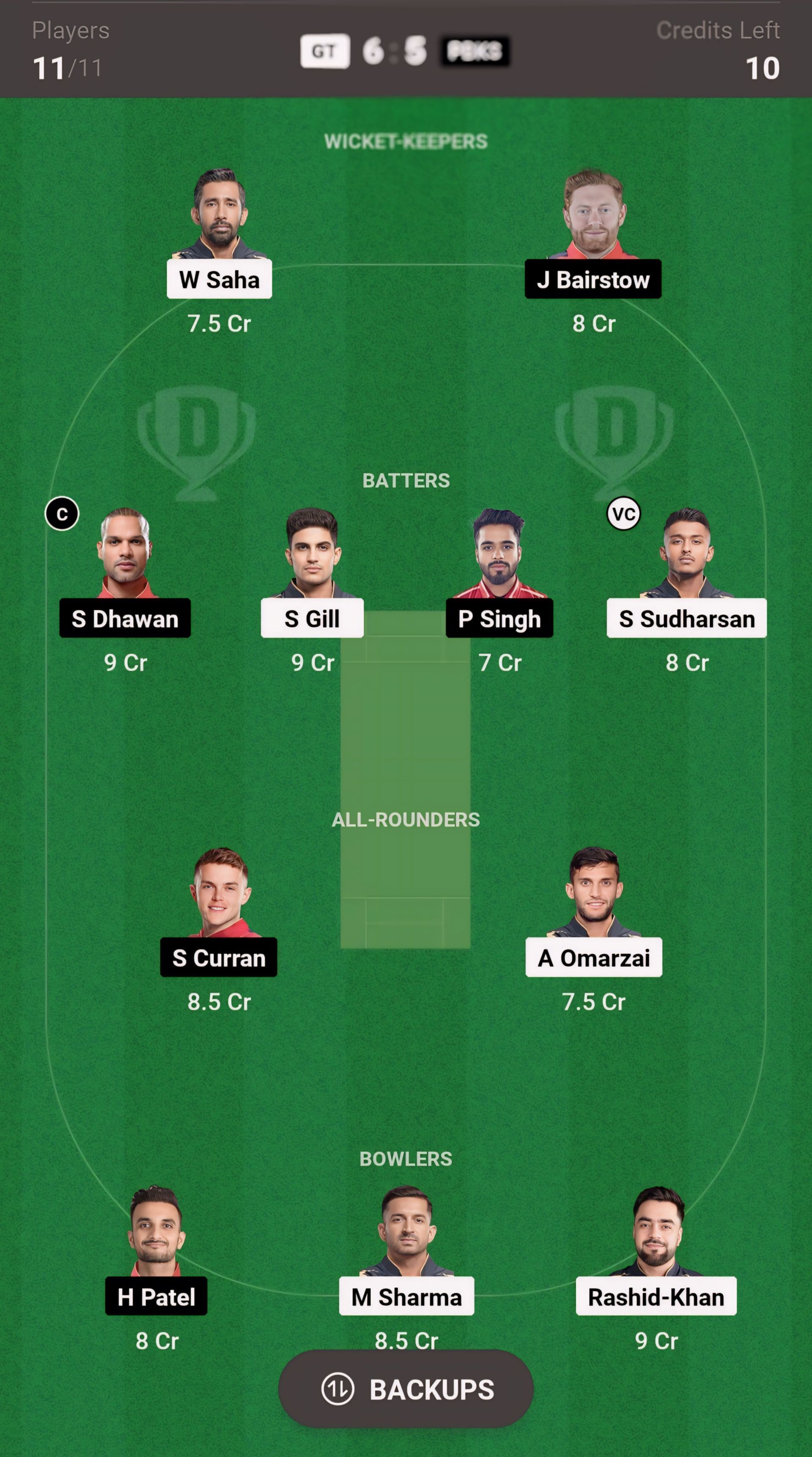 Shubman Gill has an average of 69 at this venue and 57 against Punjab Kings. Shikhar Dhawan and Sai Sudharsan are other good batter picks for today's match. Shikhar Dhawan has smashed 105 runs in three head-to-head matches.