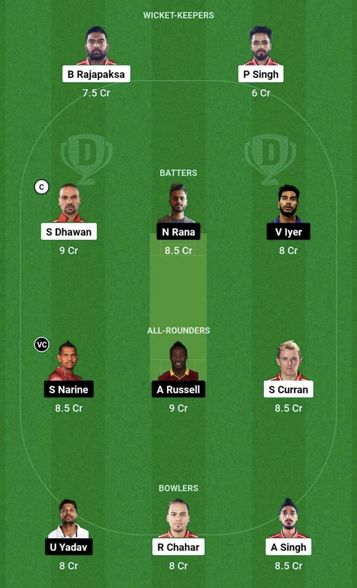 Batters: Shikhar Dhawan, Nitish Rana, Venkatesh Iyer, Shahrukh Khan