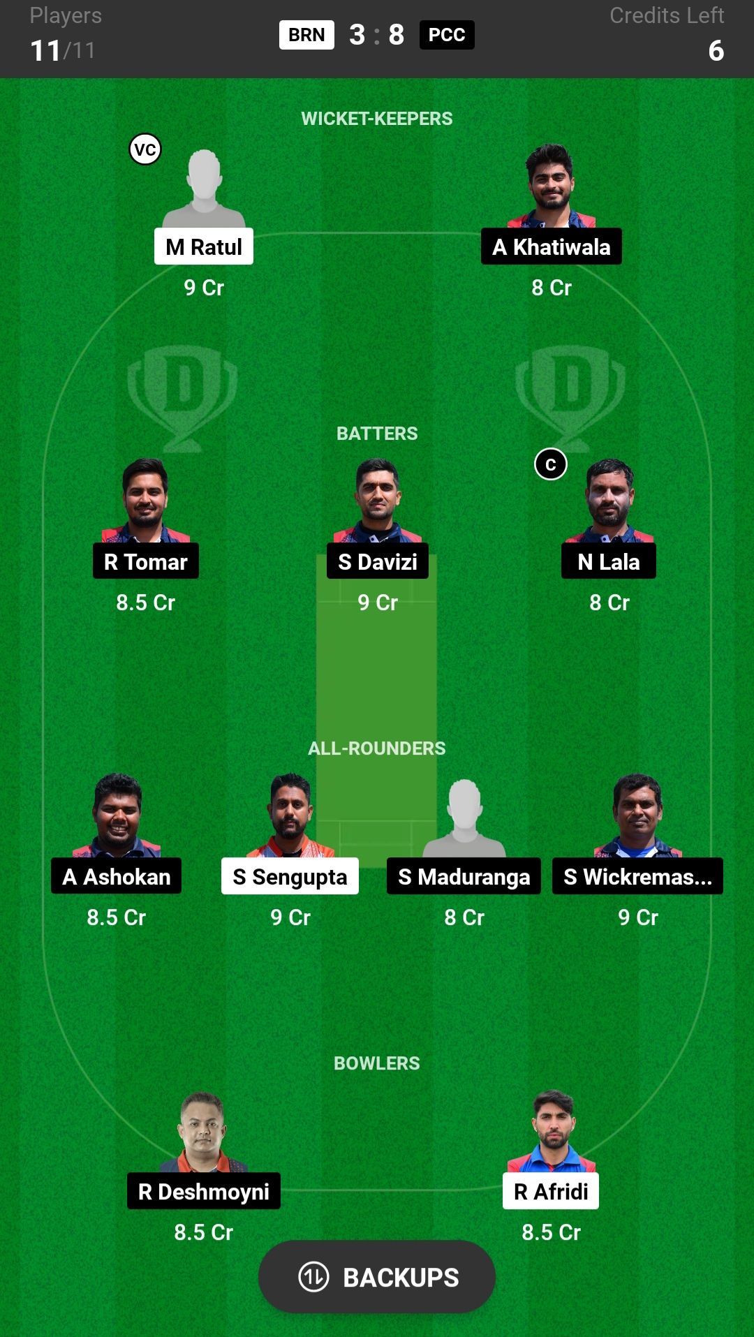 S Wickremasinghe and S Sengupta are the best all-rounder picks for the Dream11 team as they are batting in the top order and also completing their quota of overs. A Ashokan is another good pick for today's Dream11 match.