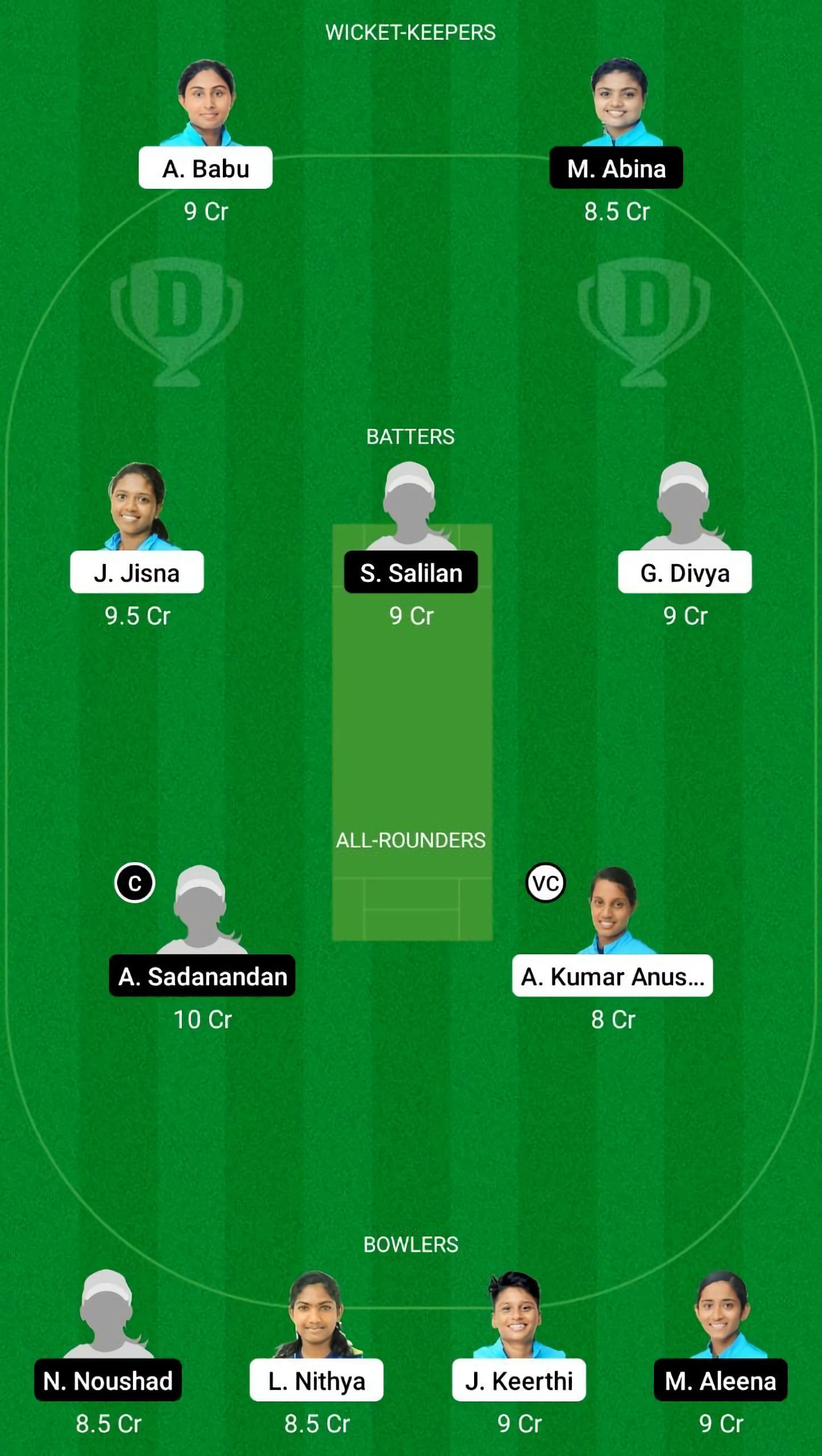 Fantasy Suggestion #1: A Babu, M Abina, G Divya, J Jisna, S Salilan, A Kumar Anusree, A Sadanandan, L Nithya, J Keerthi, N Noushad, M Aleena